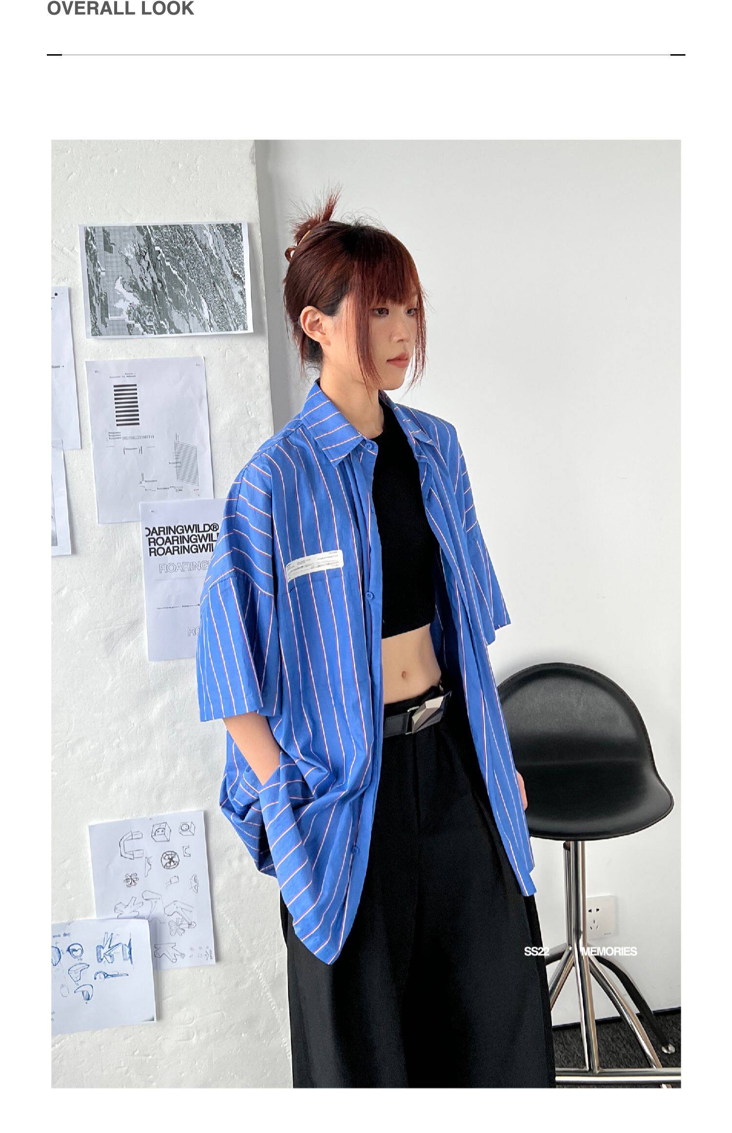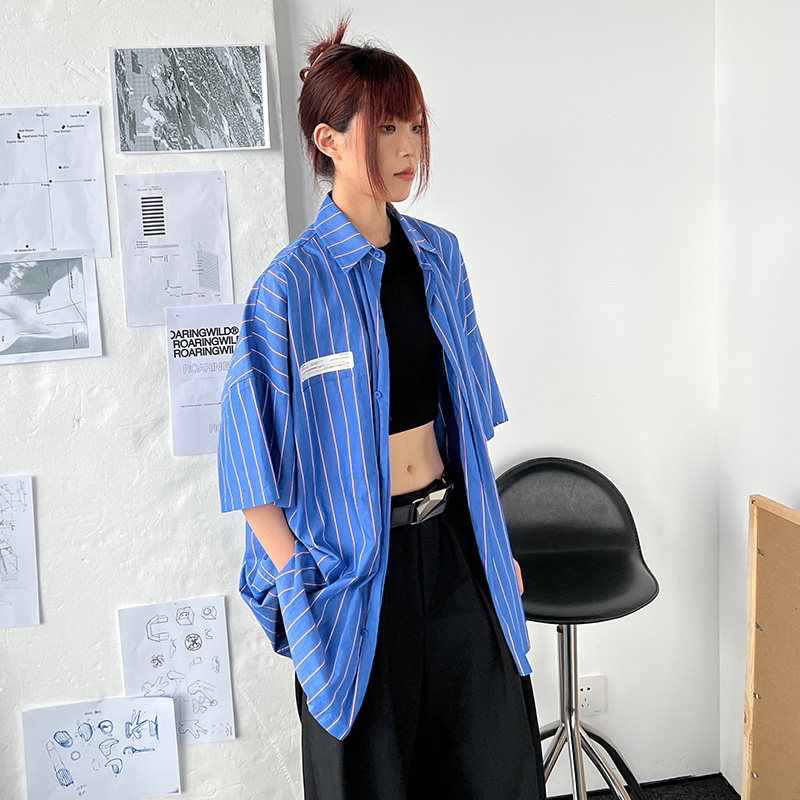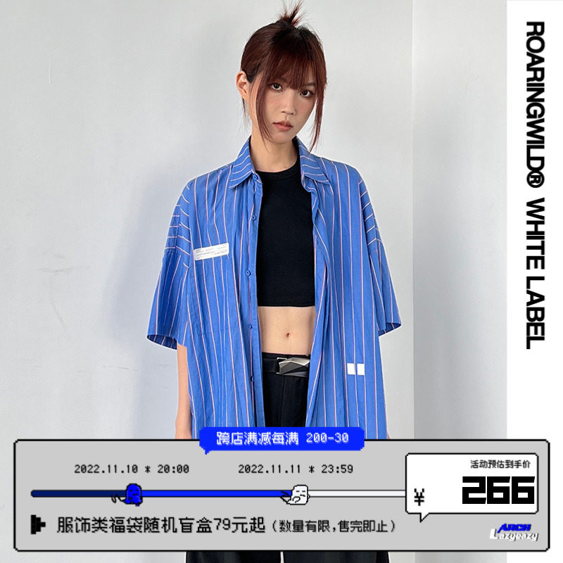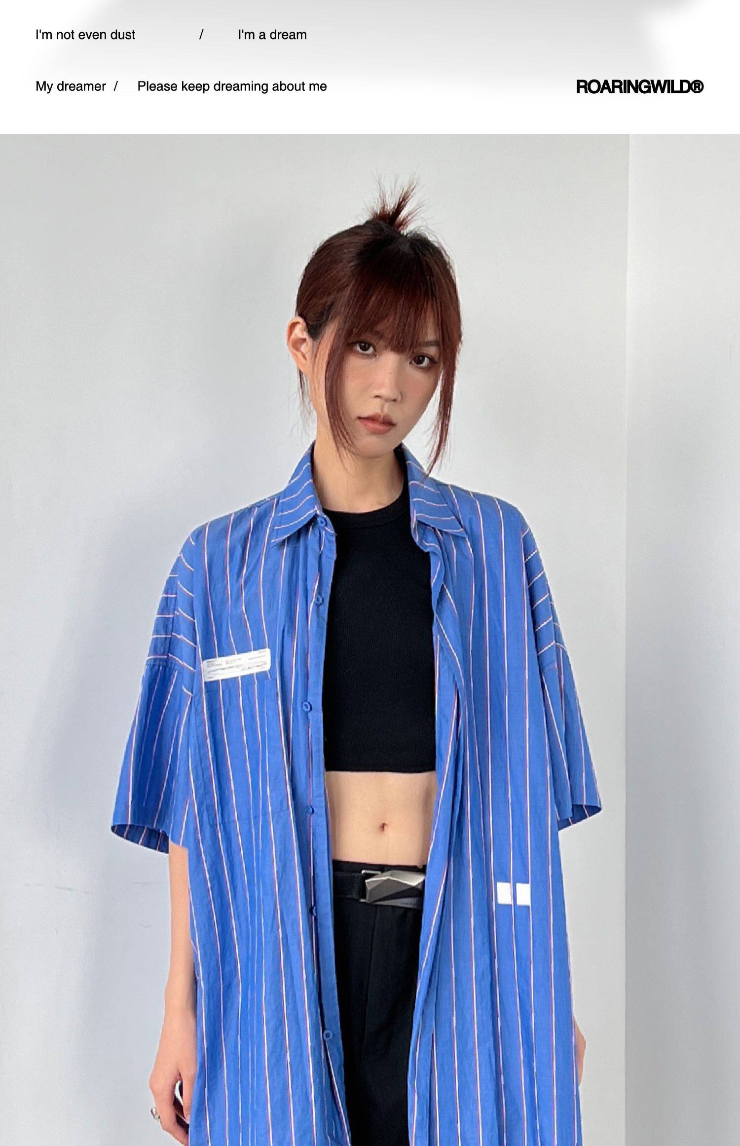 Roaringwild Roaring Beast Deep Blue Schoules полосатая полосатая коротка рубашка