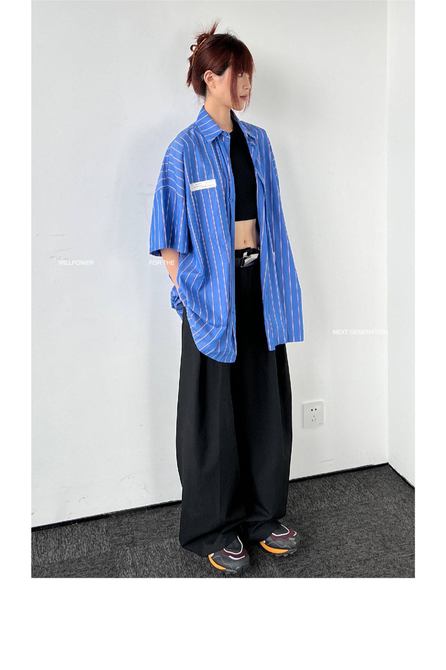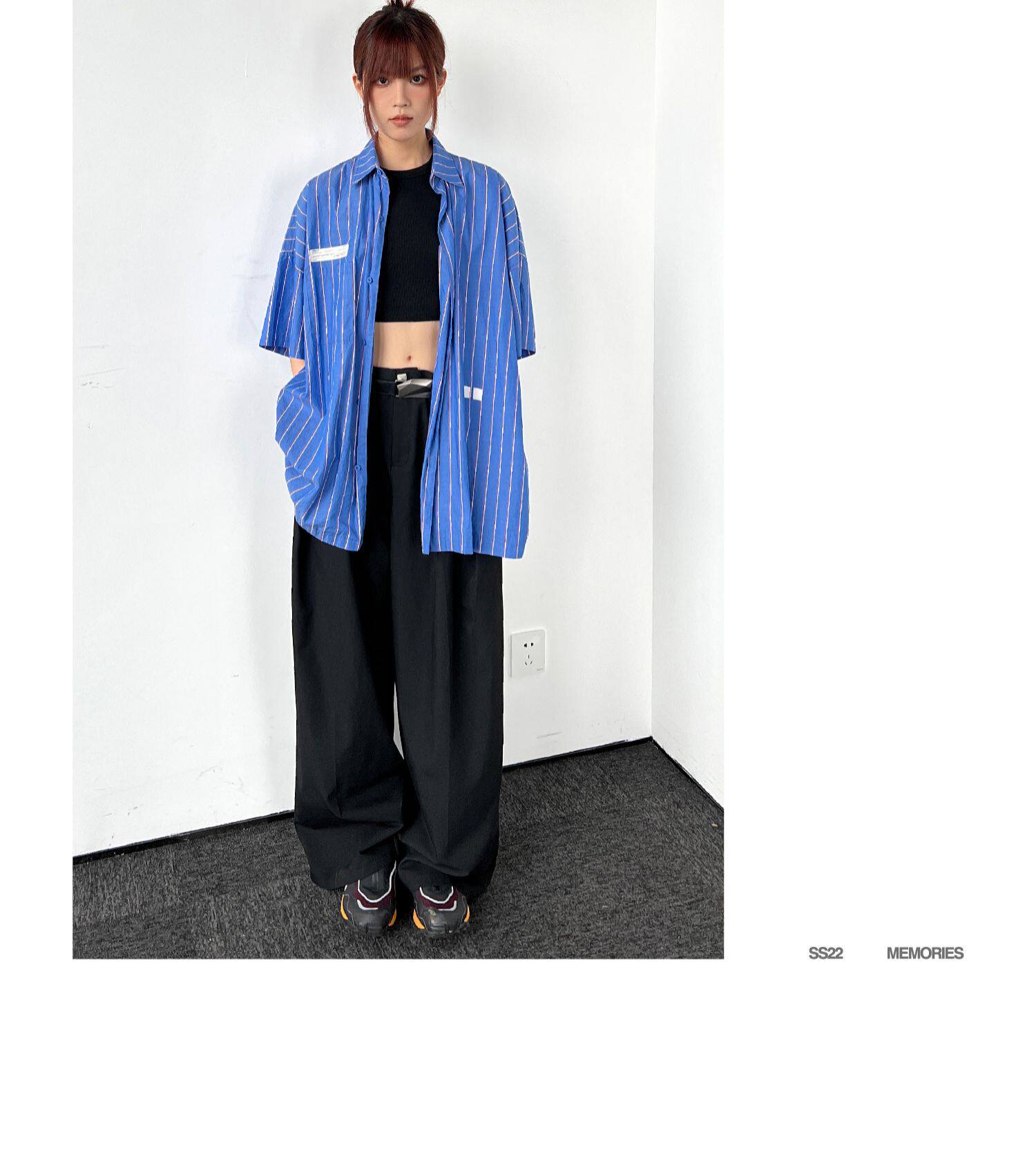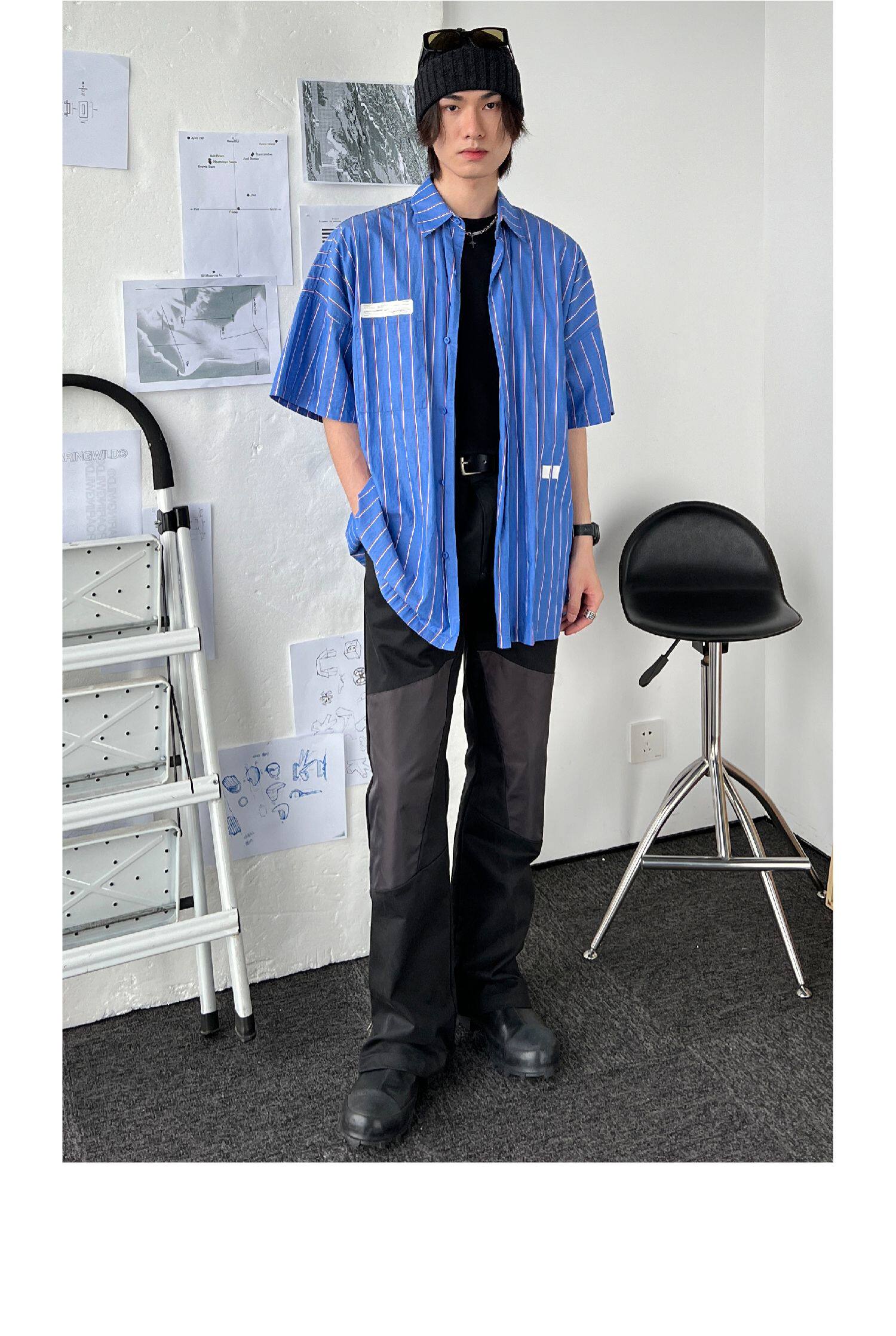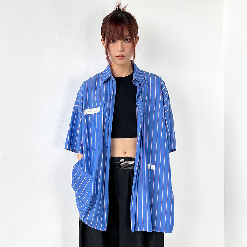 Roaringwild Roaring Beast Deep Blue Schoules полосатая полосатая коротка рубашка