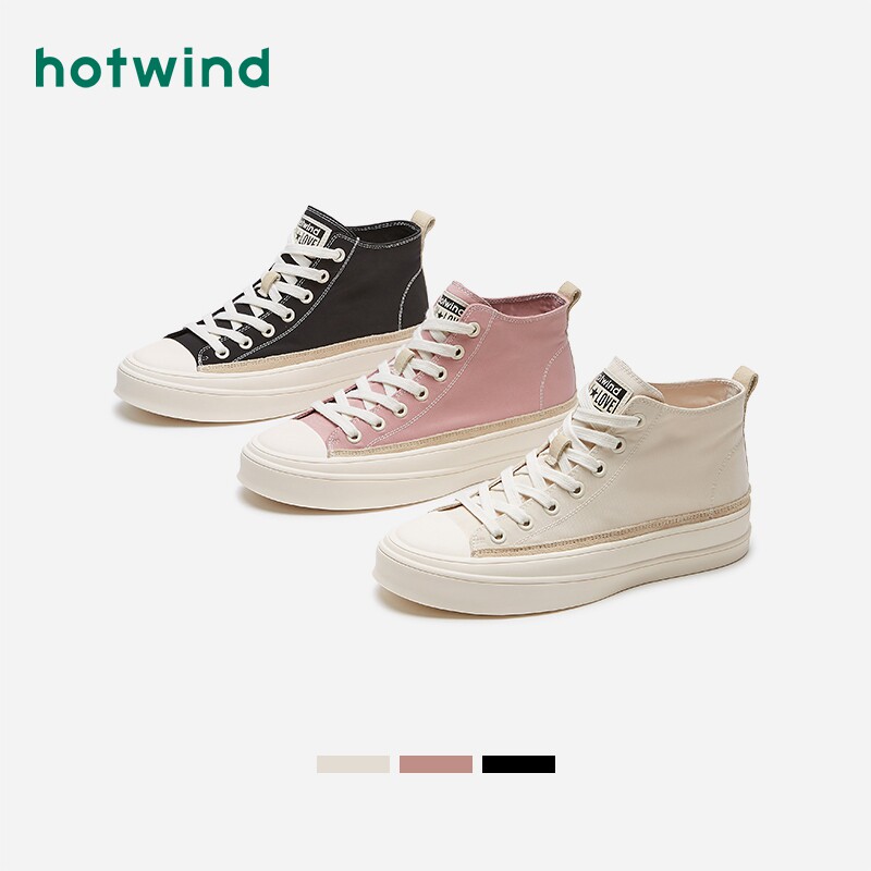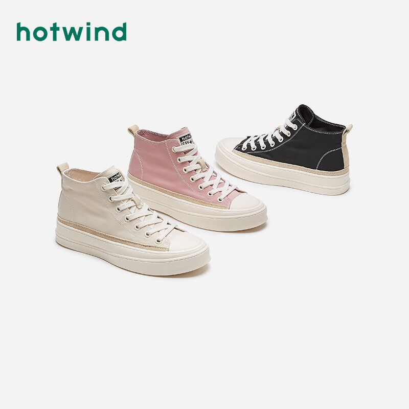 Hotwind/热风 Парусиновая обувь, женская повседневная обувь с высоким берцем на шнуровке, осень 2020, новые корейские универсальные студенческие туфли с ремешками