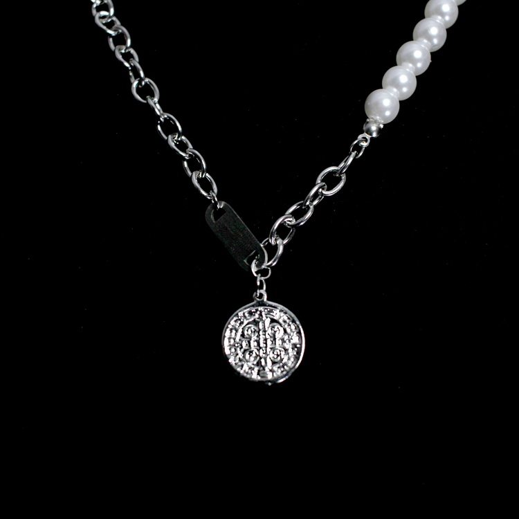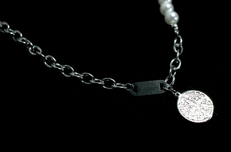 Ожерелье из жемчуга из нержавеющей стали, ретро подвеска, цепочка до ключиц
