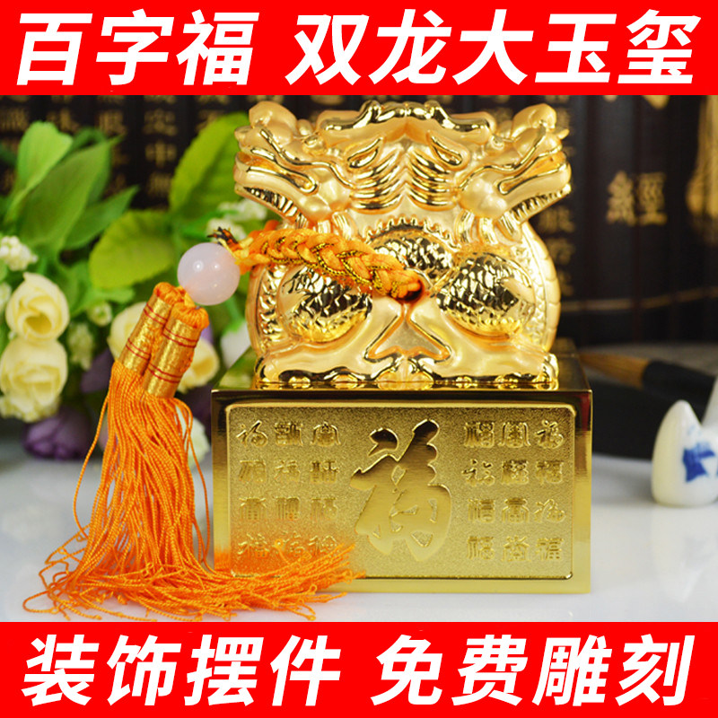 Медная нефритовая печать Seal Big Gold Double Dragon Jade Sealcer украшения жетон золотой камень выгравированная коллекция подарки