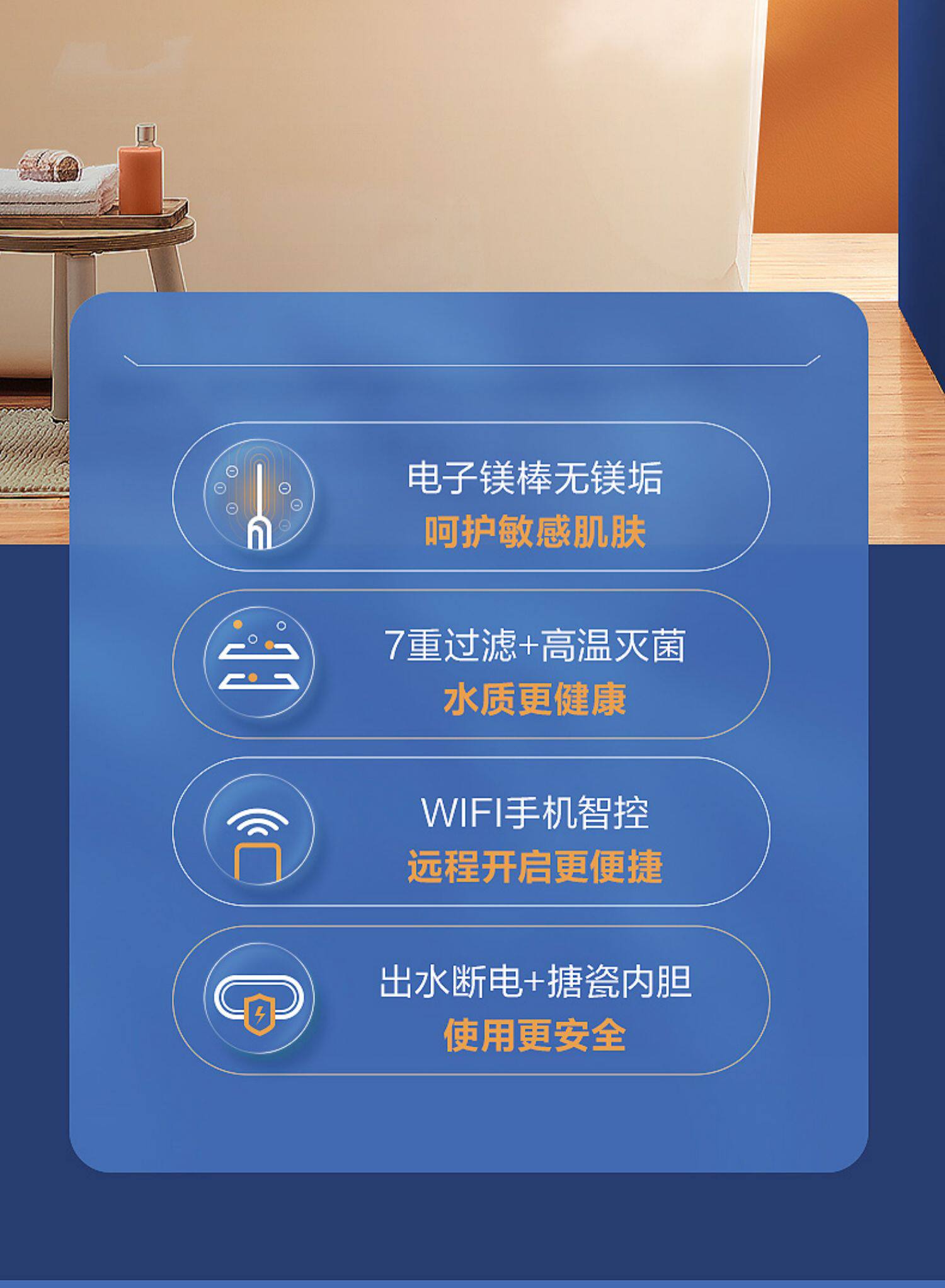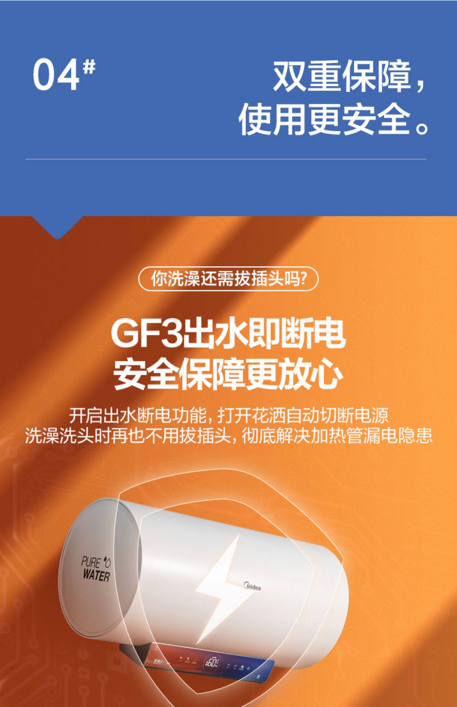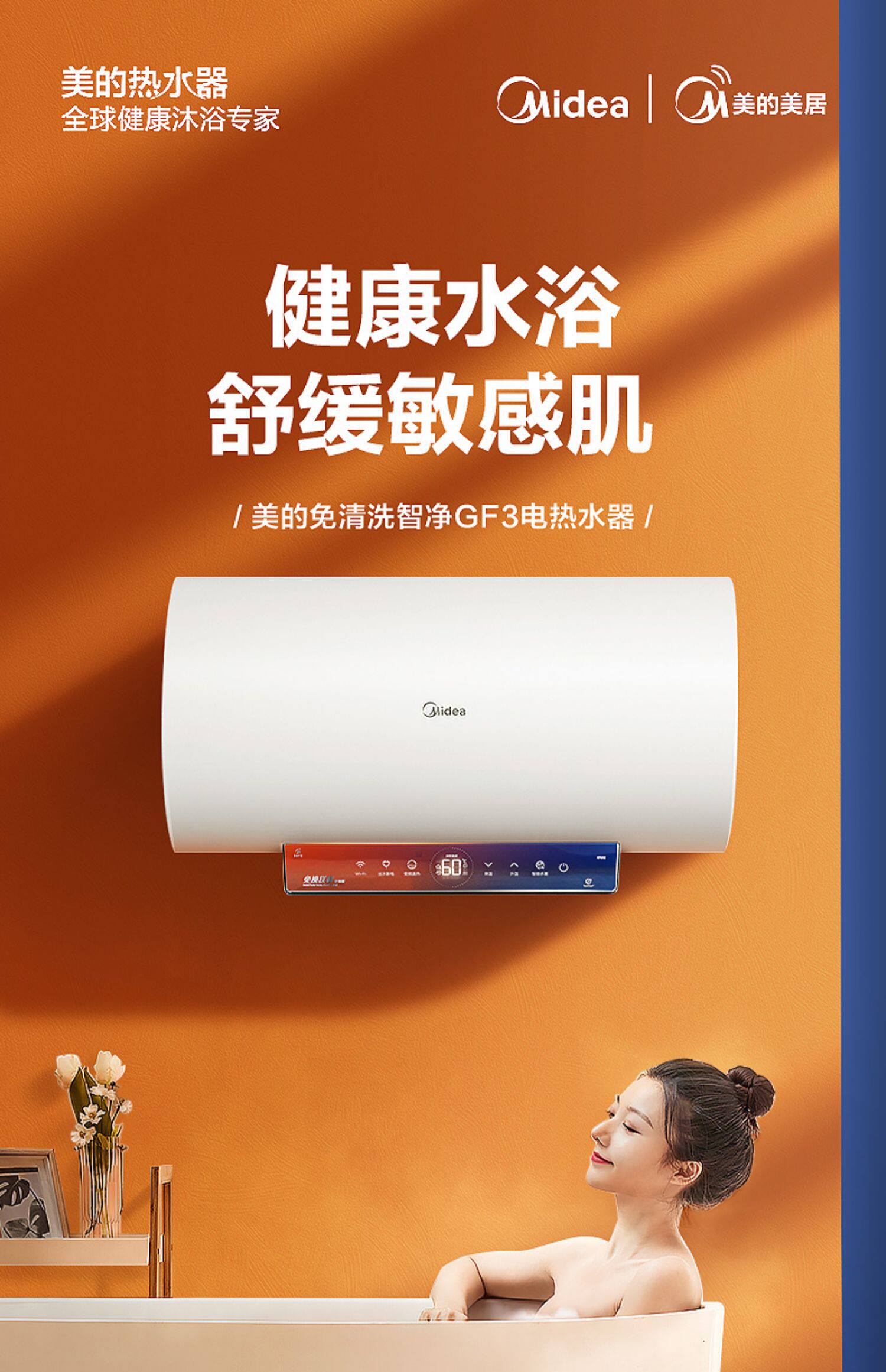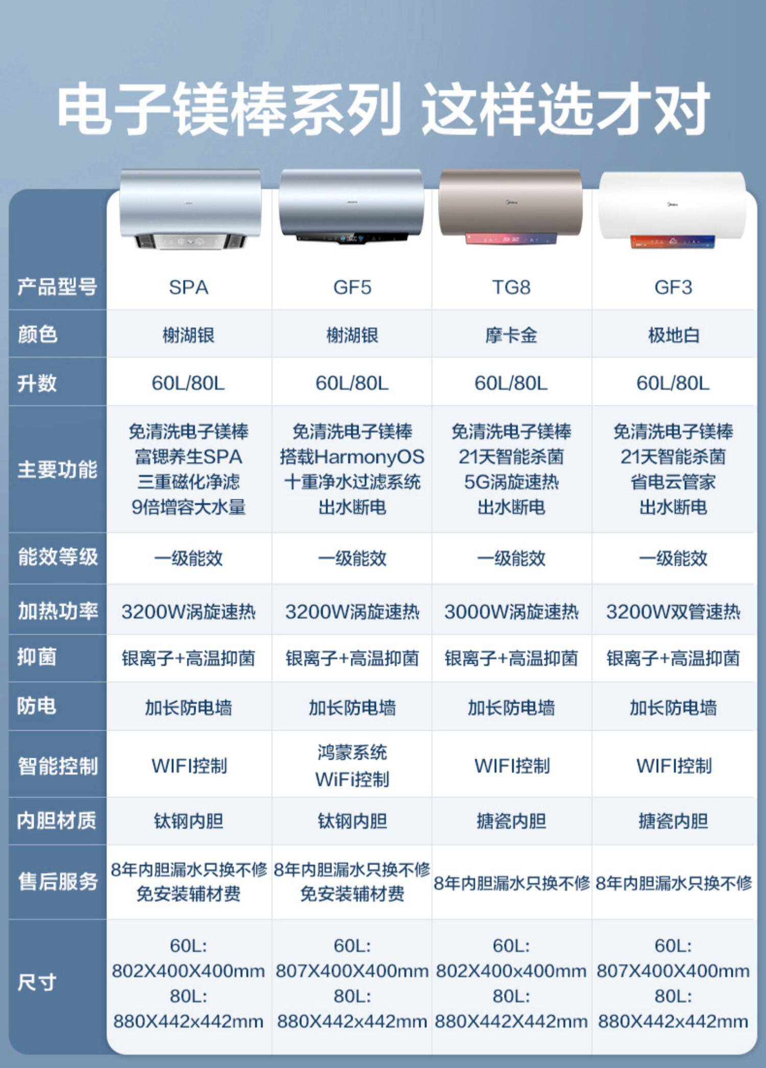 Midea -Бесплано магниевое переключение 60 -литровое GF3 Хранение воды Электрическое водонагреватель Электричество и скорость ванной комнаты Hot 80l Smart Home Appliance