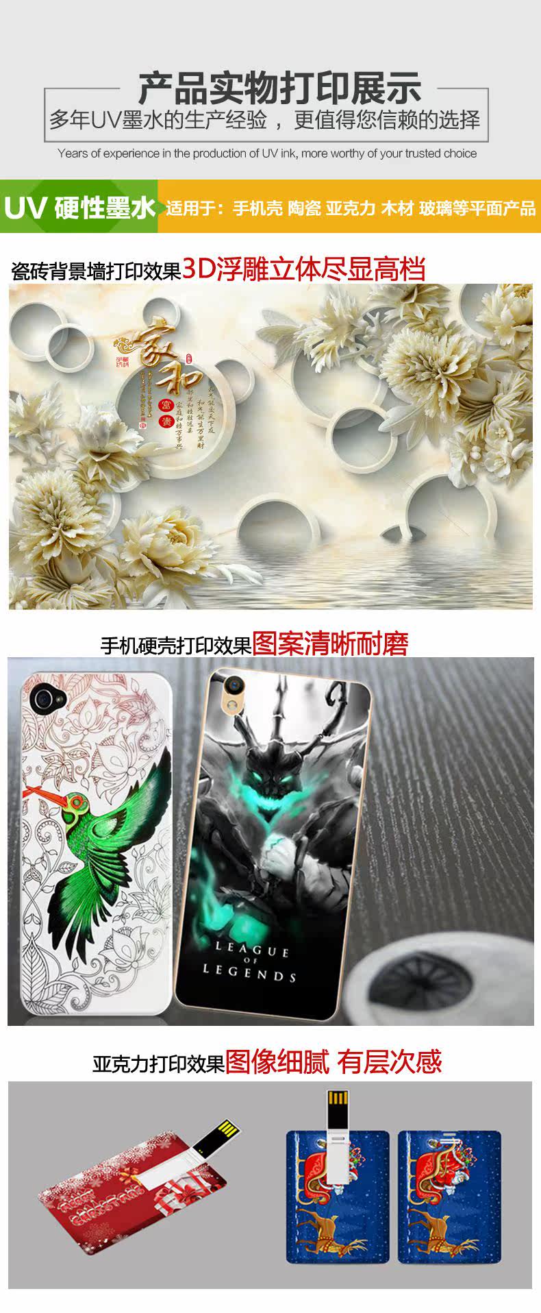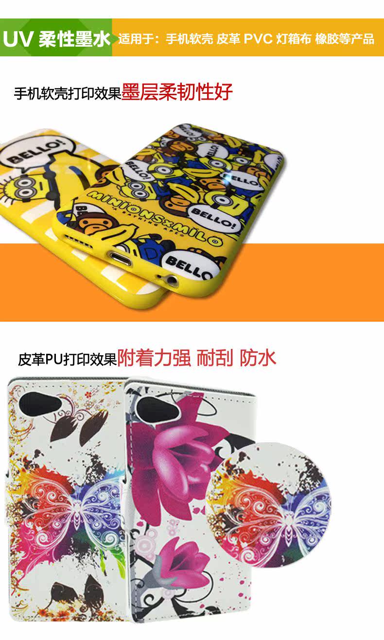 Диаметр пигментных частиц в ультрафиолетовых чернил составляет менее 1 микрона, не содержит летучих органических растворителей, ультра -низко -вязкость и не раздражающий запах. Это может гарантировать, что чернила не блокированы во время процесса печати реактивной реакции.Цвет сильный, блестящий, высокий насыщенный, сильный в организме и превосходное выражение цвета.Это может быть сопоставлено с различными моделями различных моделей текущего рынка.Широкое применение, например: кожа, деревянная доска, кристалл, ПВХ, пресс, акрил, пластик, камень, резина, диск, мгновенная наклейка, светло -коробка, стекло, керамика, металл, как бумага, более подходящие для процесса переноса воды в Различные типы транскриовера реального цветного изображения на среде.Подходит для рекламы, украшения, карточек, портретов, багажных подарков и других отраслей, эффект печати -это хорошая защита от солнца и сопротивление царапинам, высокоопределение цифровых цветных изображений, красивый цвет, водонепроницаемость изображения, не доливаемость, разумная цена.Высокое качество, низкая стоимость, защита окружающей среды и экономия энергии.Вылеченные чернильные слой высокий, с хорошей адгезией, очисткой, растворителем, высоким блеском.