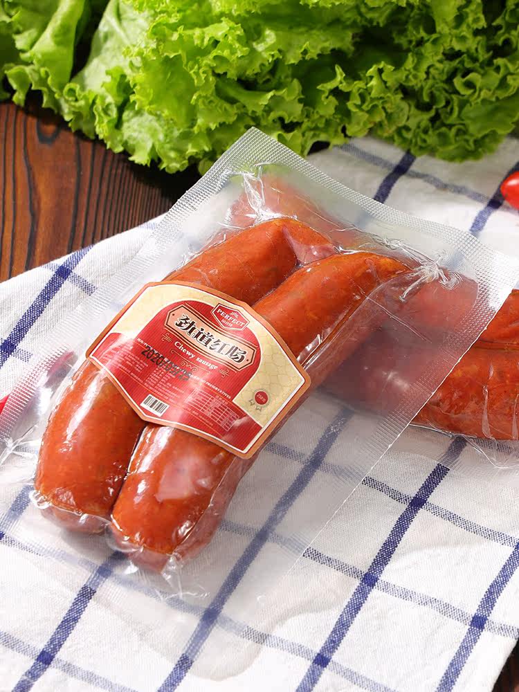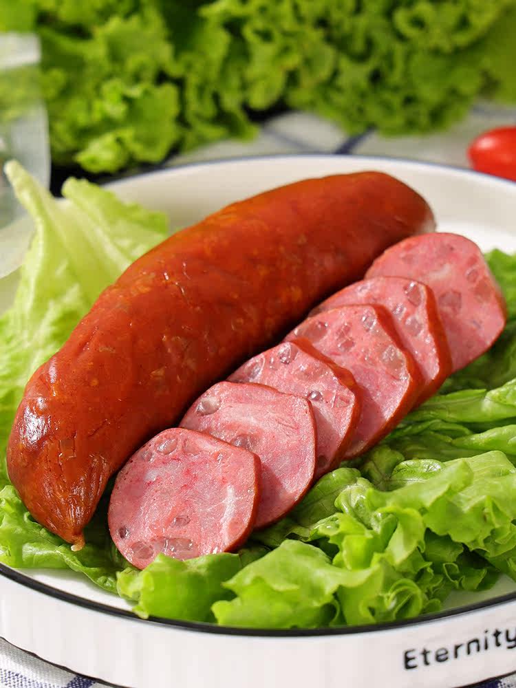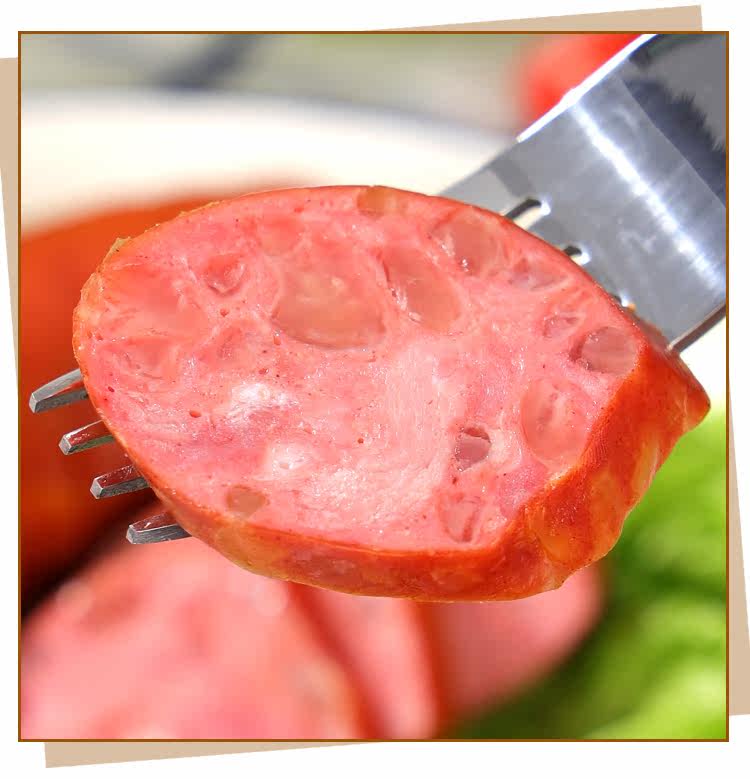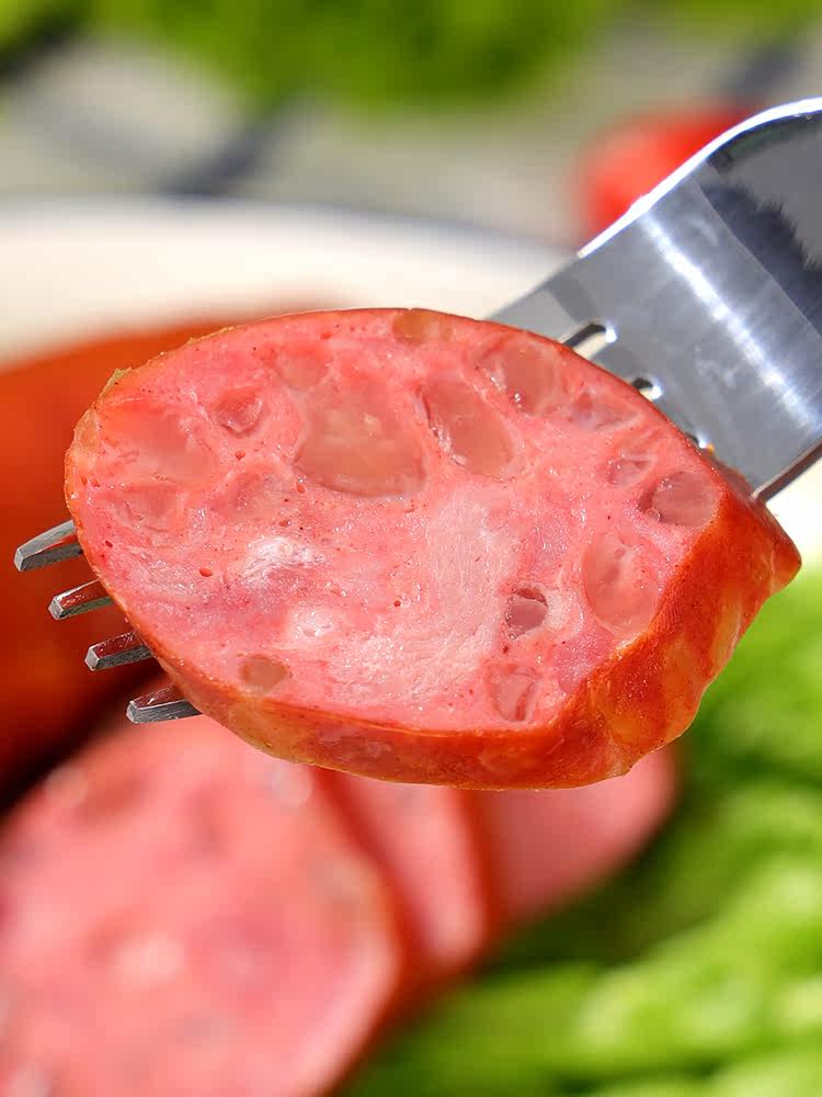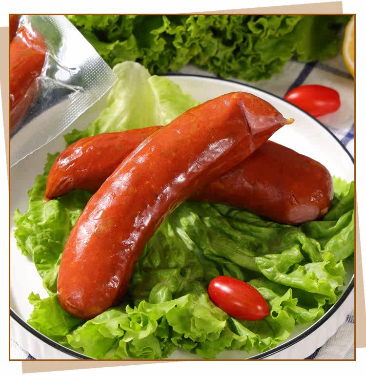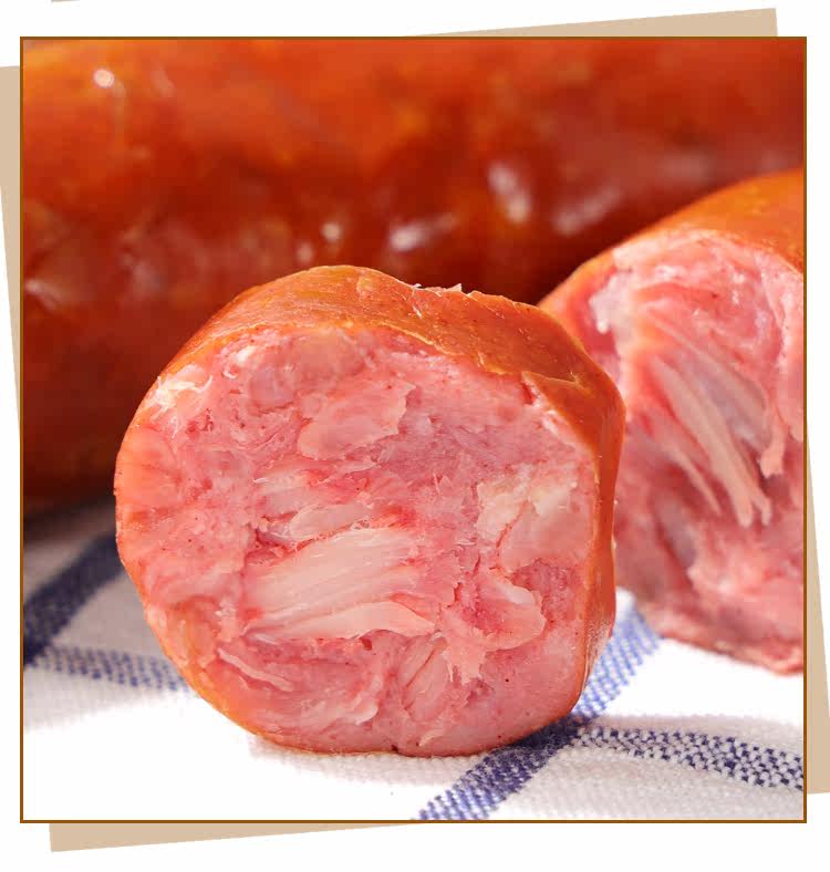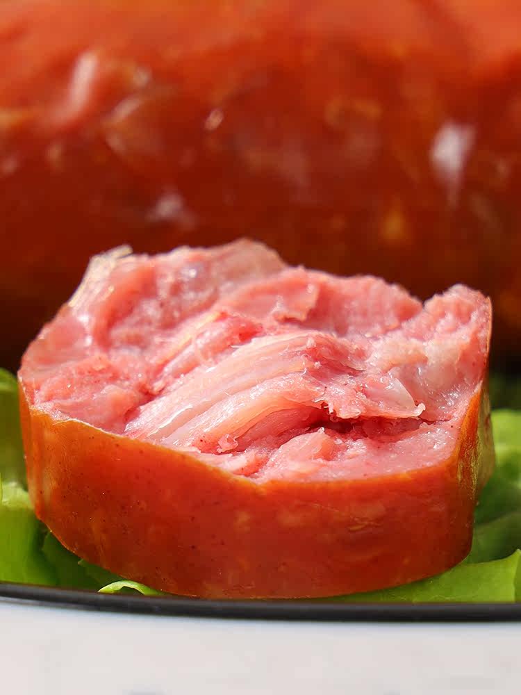 Русская кишечная колбаса из свиной кожи в сосудимых на кожа