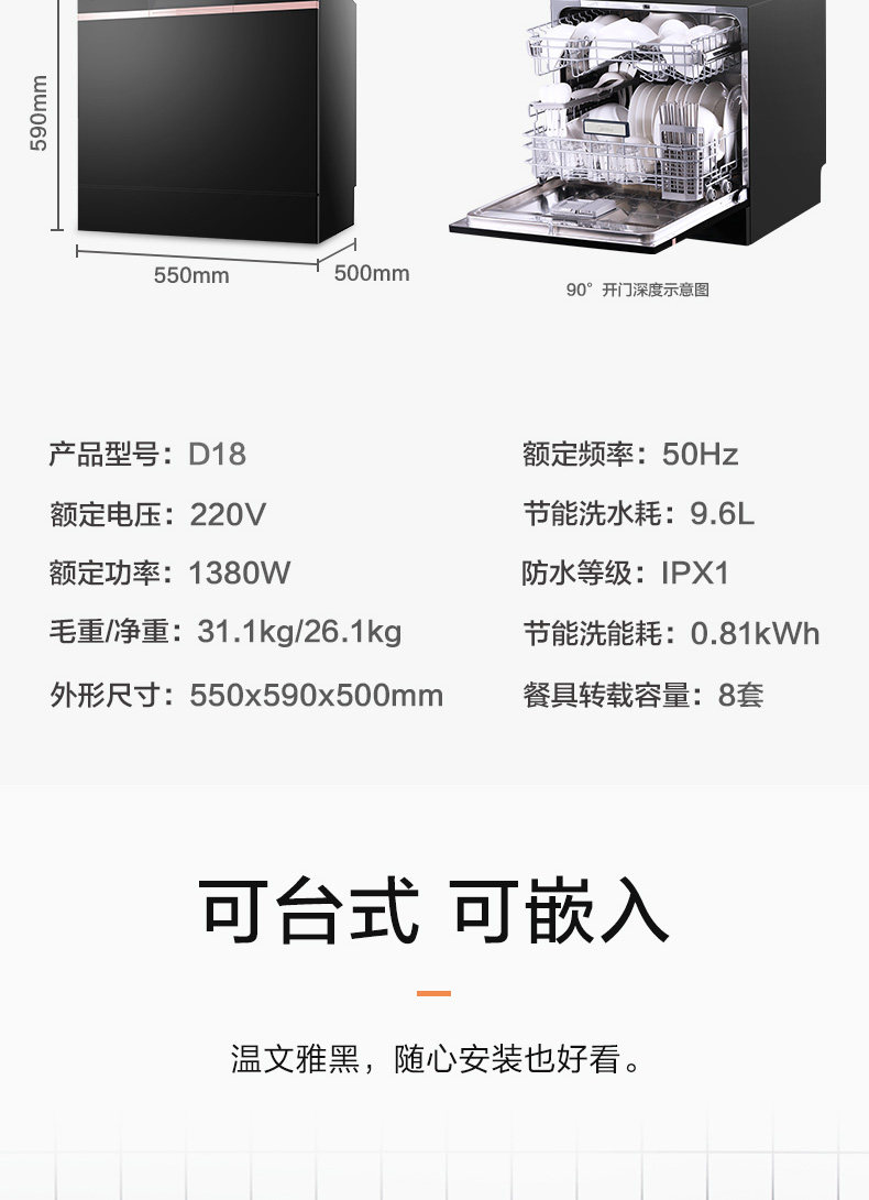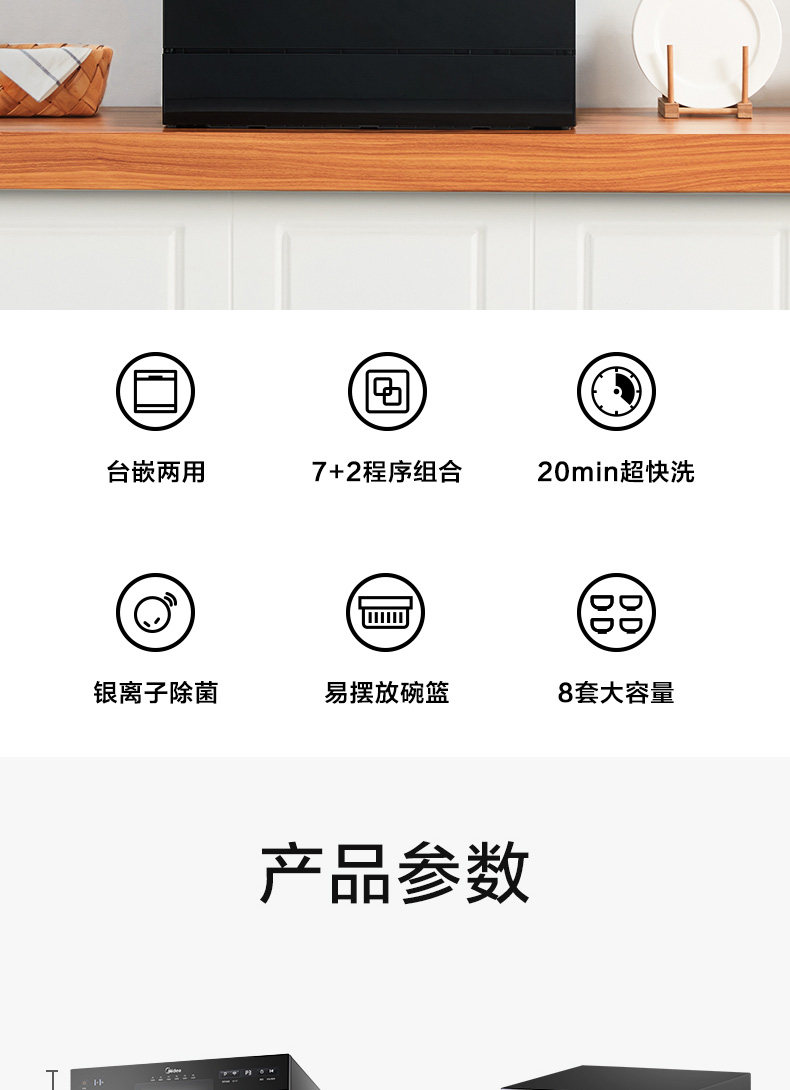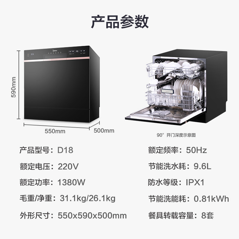 Midea D18 посудомоечная машина Home Полный автоматический 8 набор встроенных Smart All -in