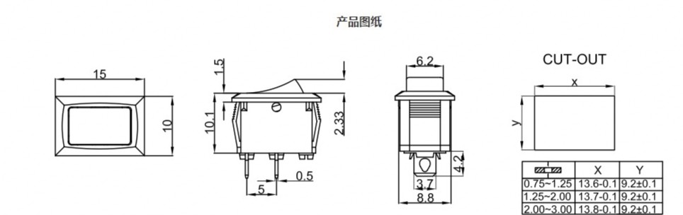 Маленький переключатель, 250v, 15mm