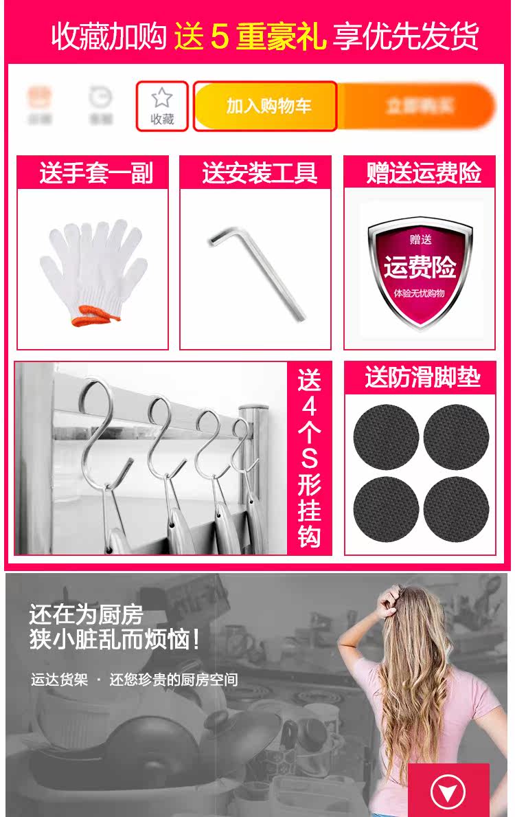 Сталка для хранения ограждения из нержавеющей стали 5 -й слой домашних кухонных принадлежностей Daquan Landing Multi -Layer Shelf 5 -й слой хранения 4