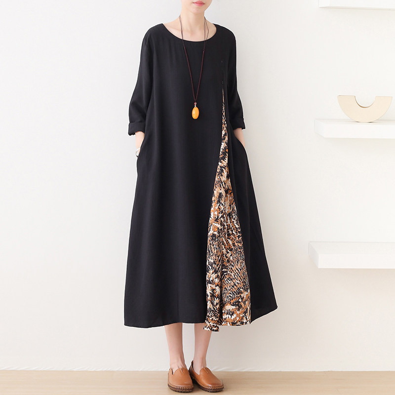 Осеннее оригинальное дизайнерское ретро длинное платье, юбка, длина макси, оверсайз, большой размер