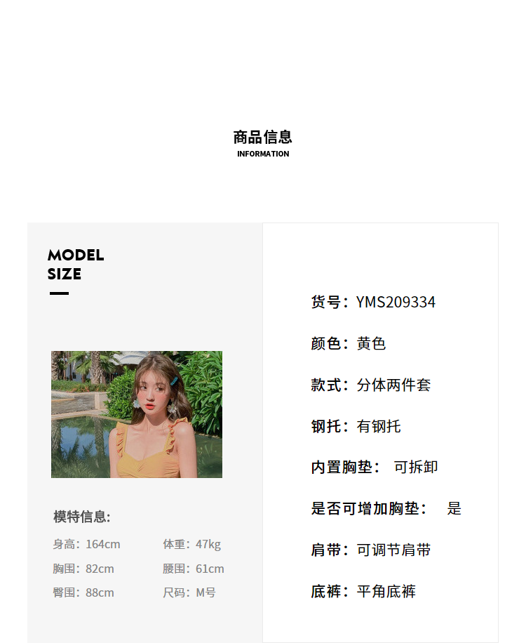 亦美珊 Раздельный свежий купальник, комплект, бюстгальтер пуш-ап, коллекция 2021