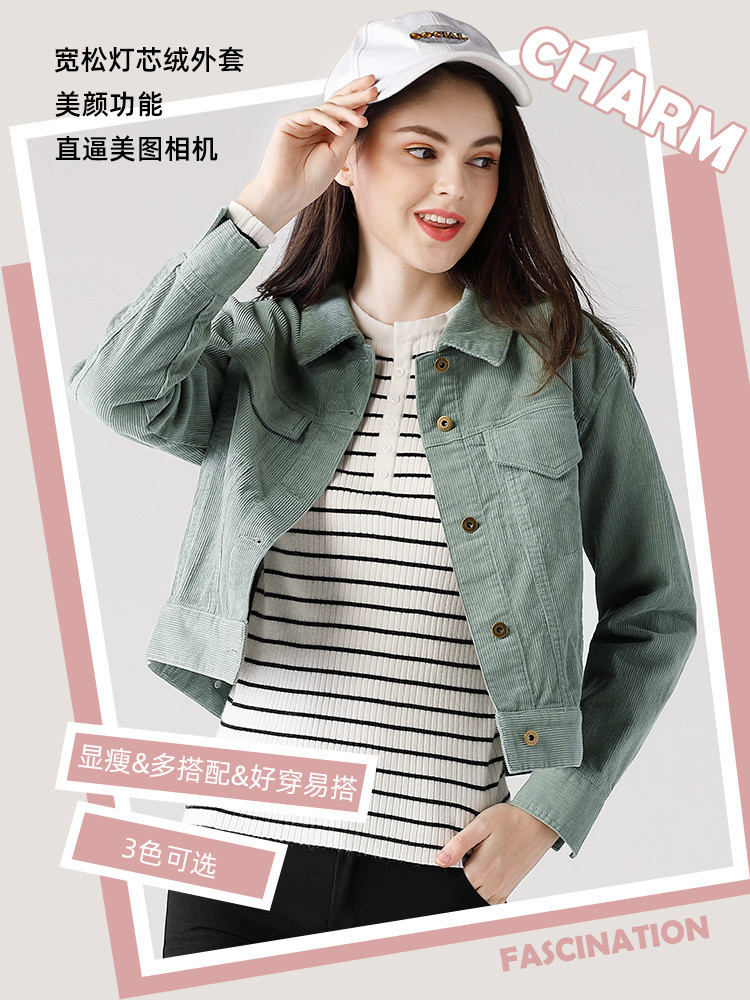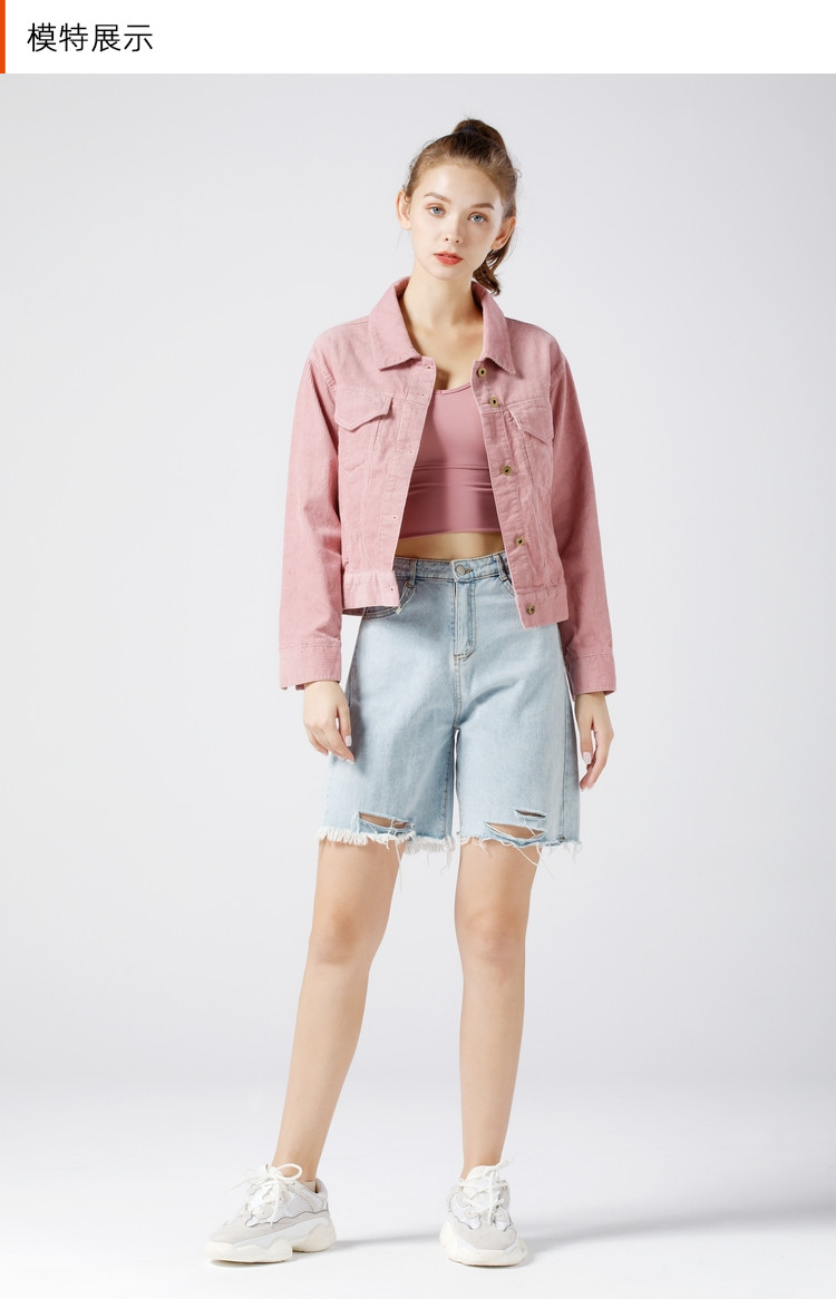 艾米恋 Розовая вельветовая весенняя куртка, короткий цветной лонгслив, облегающий крой