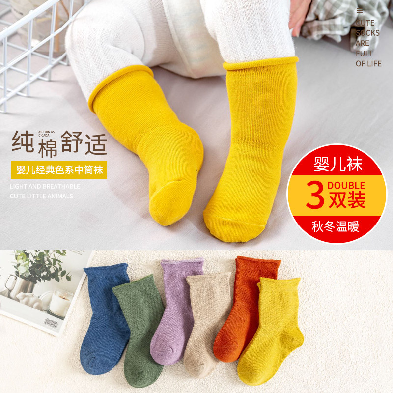 Детские осенние хлопковые носки подходит для мужчин и женщин для новорожденных, весенние гольфы для раннего возраста, средней длины