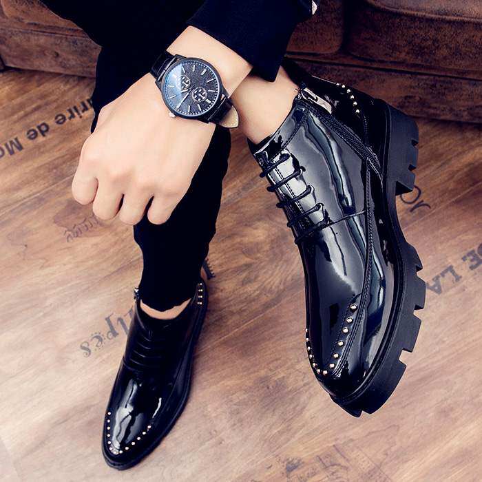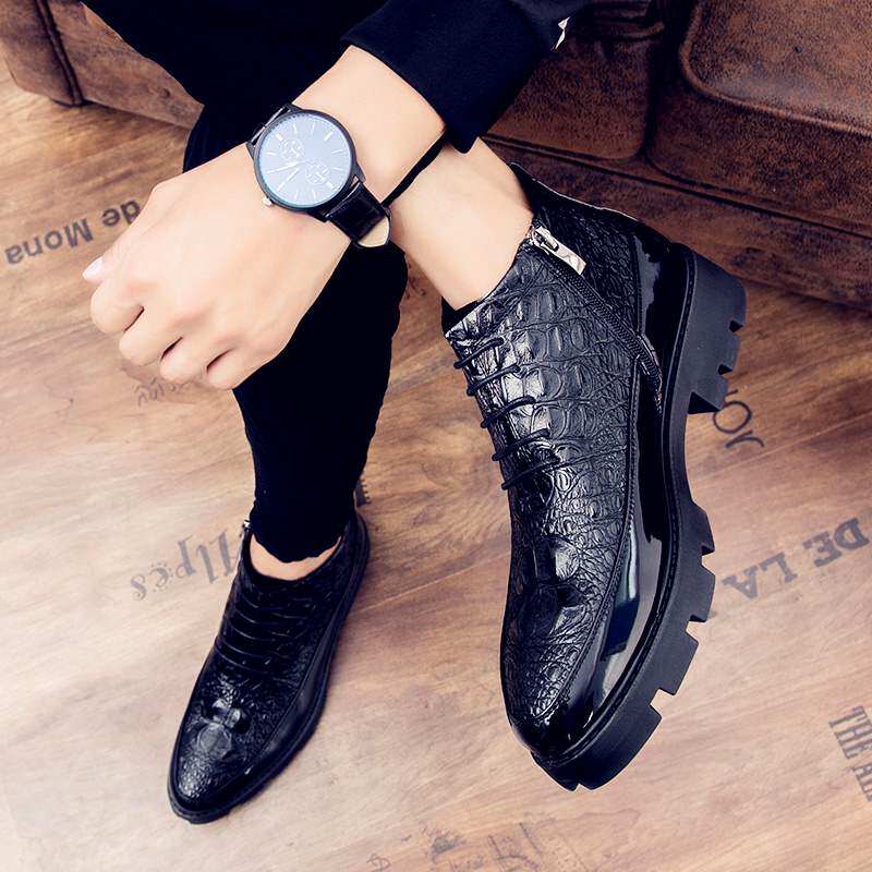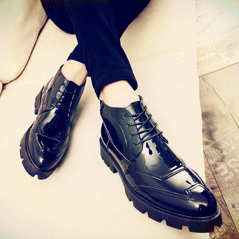 Martens, мужские высокие трендовые дышащие ботинки в английском стиле для кожаной обуви для отдыха на платформе, осенние, в корейском стиле
