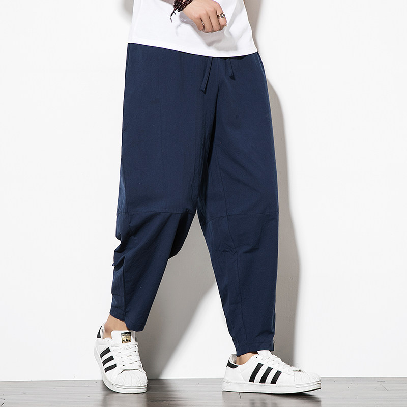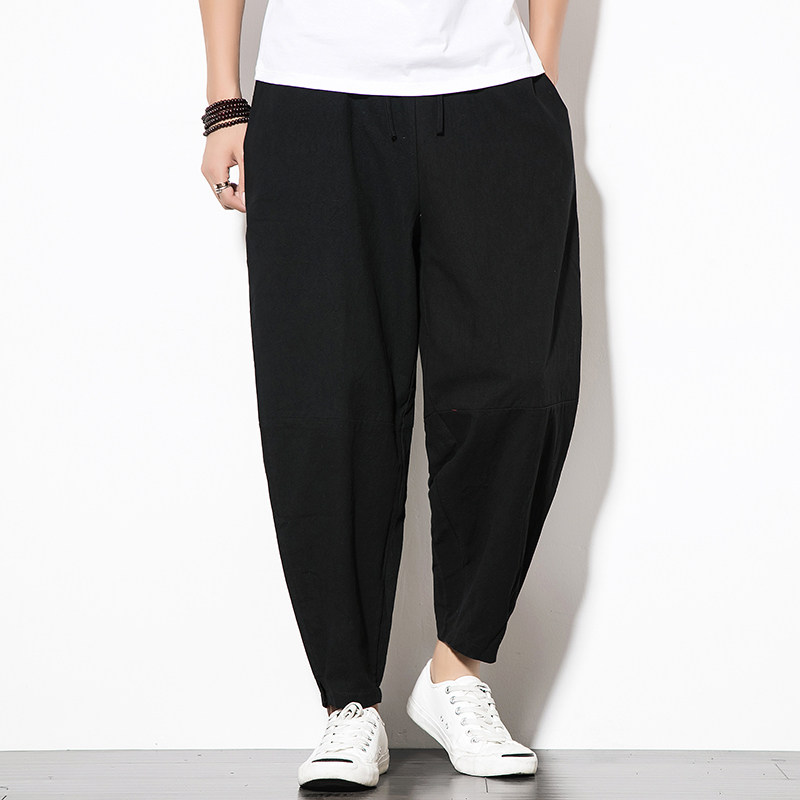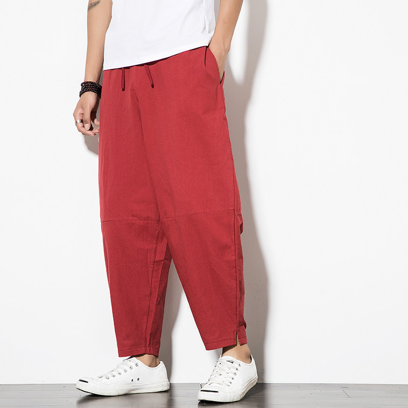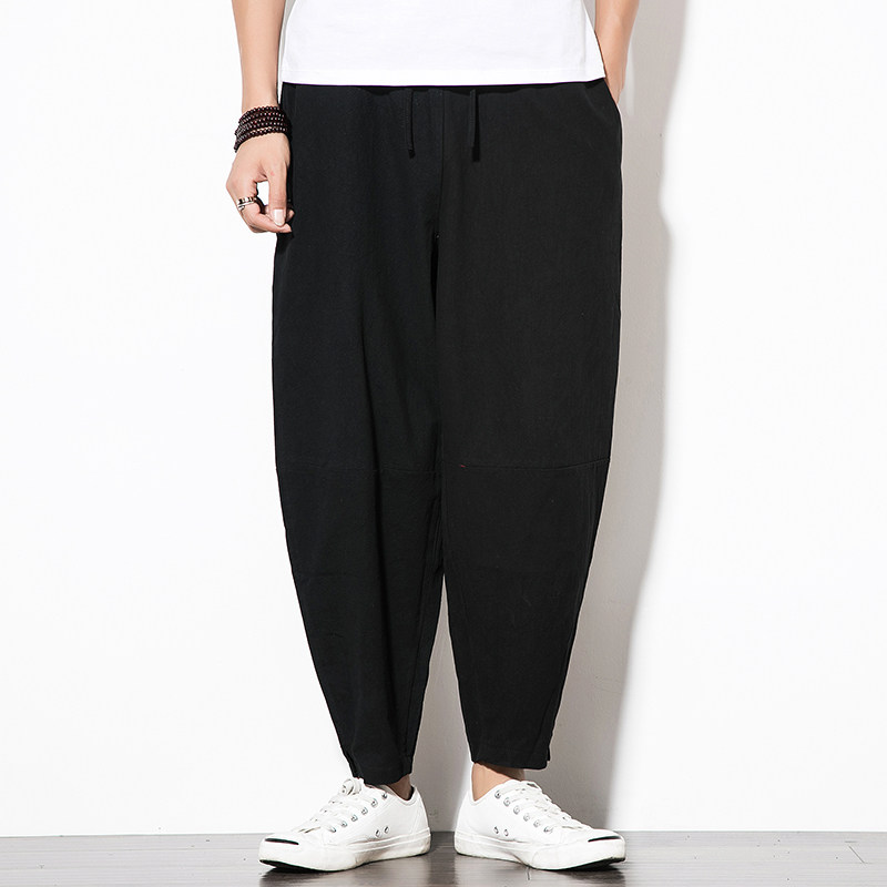 Китайские осенние штаны, фонарь, китайский стиль, свободный крой, из хлопка и льна, большой размер