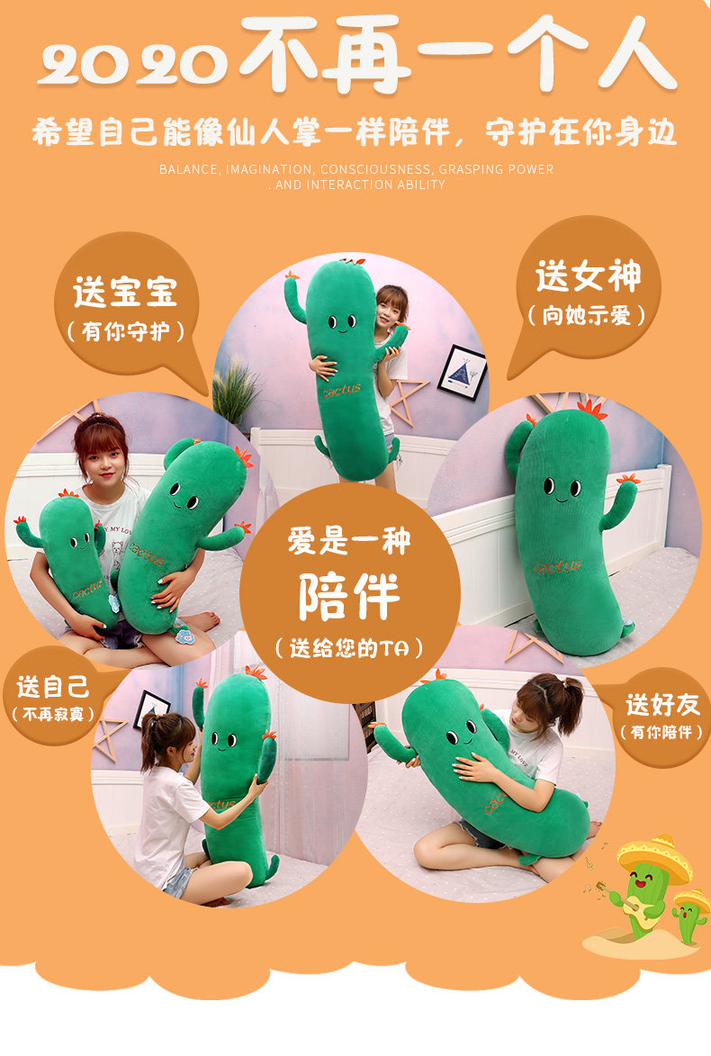 Плюшевая игрушка для сна, подушка, реалистичная съёмная кукла подходит для мужчин и женщин, кактус