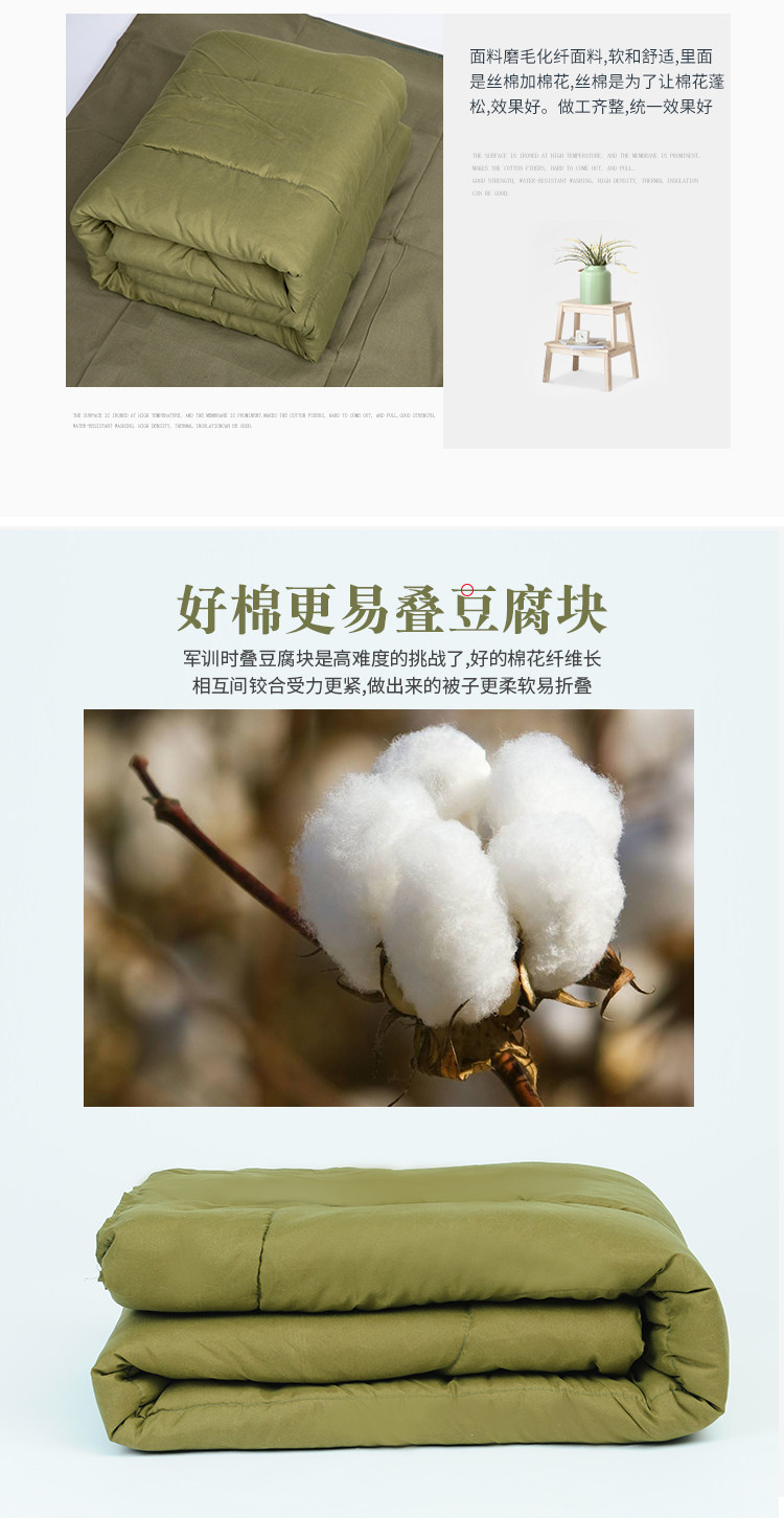 - 【Чистый хлопок】 военное зеленое стеганое одеяло 6 кот + зеленый матрас + подушка