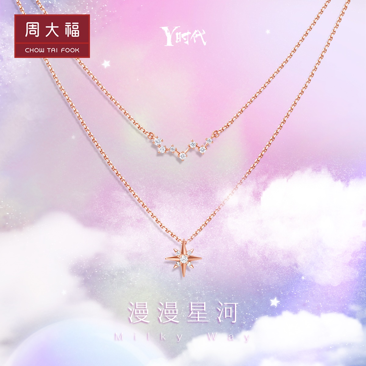 周大福 Mono Star River Fairy Double Chain 18k Gold Diamond Collese Женский U181777