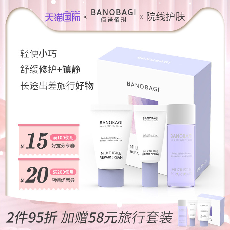 BANOBAGI Успокаивающий восстанавливающий комплект для путешествий, тонер, сыворотка, крем, 15 мл, 5 мл, 10 мл
