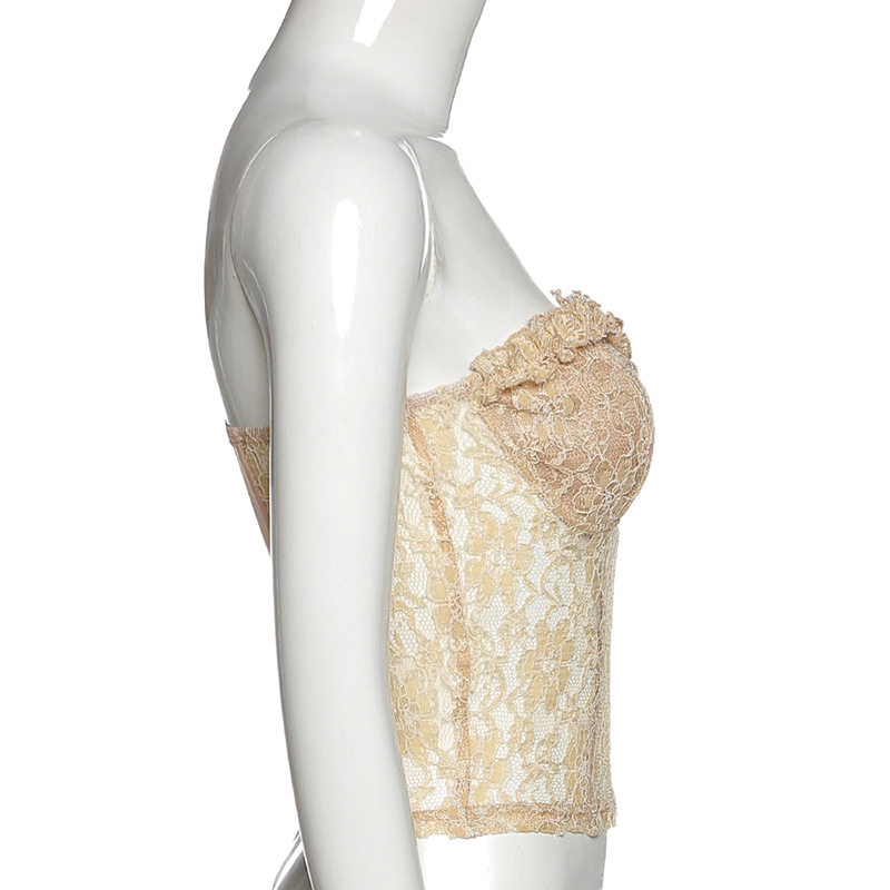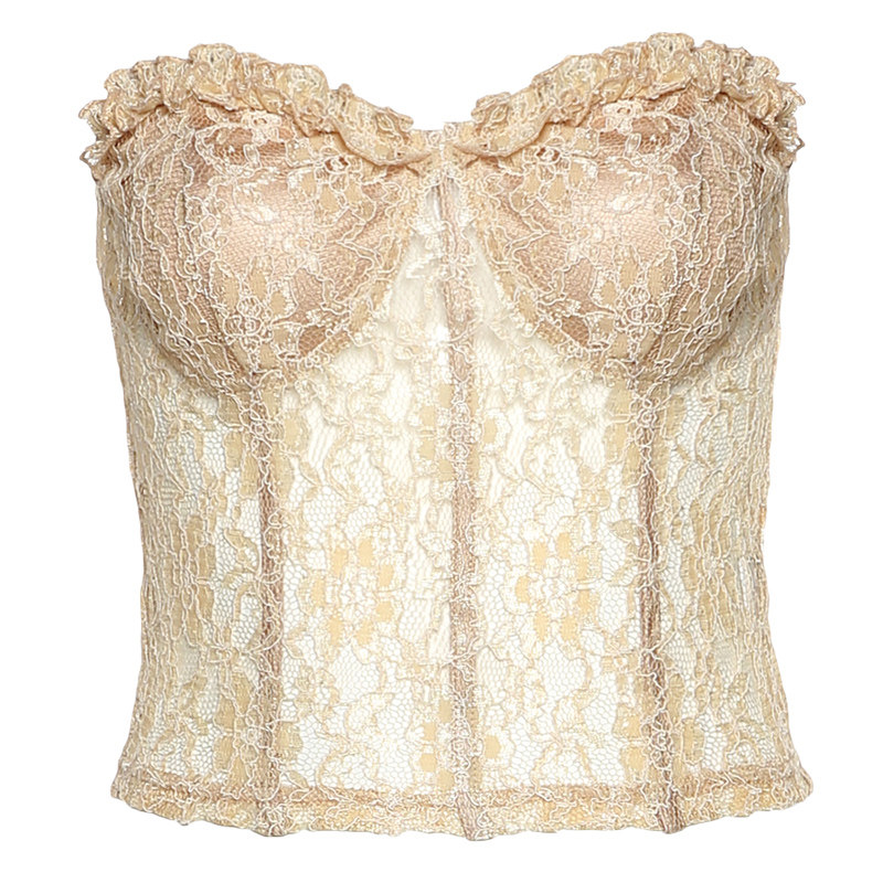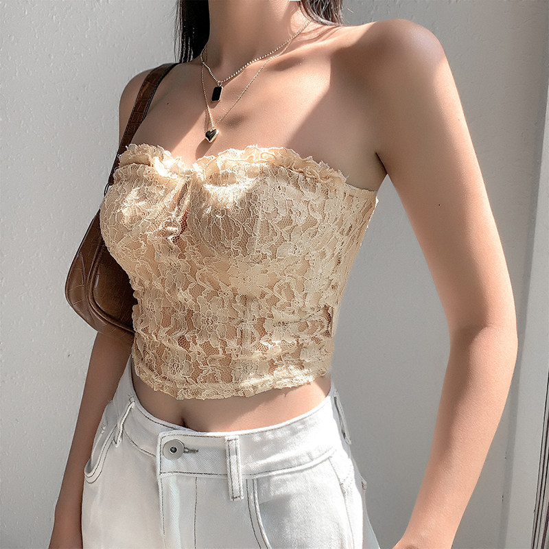 Сексуальная приталенная майка пуш-ап, кружевной топ без лямок, белье для повседневной носки, европейский стиль, открытые плечи, кружевное платье