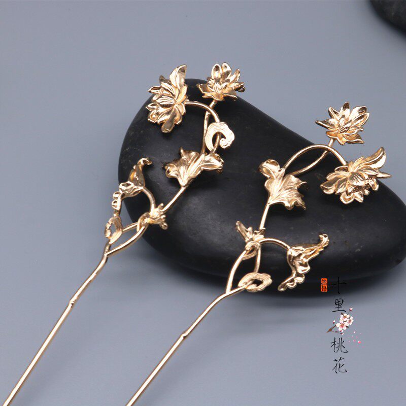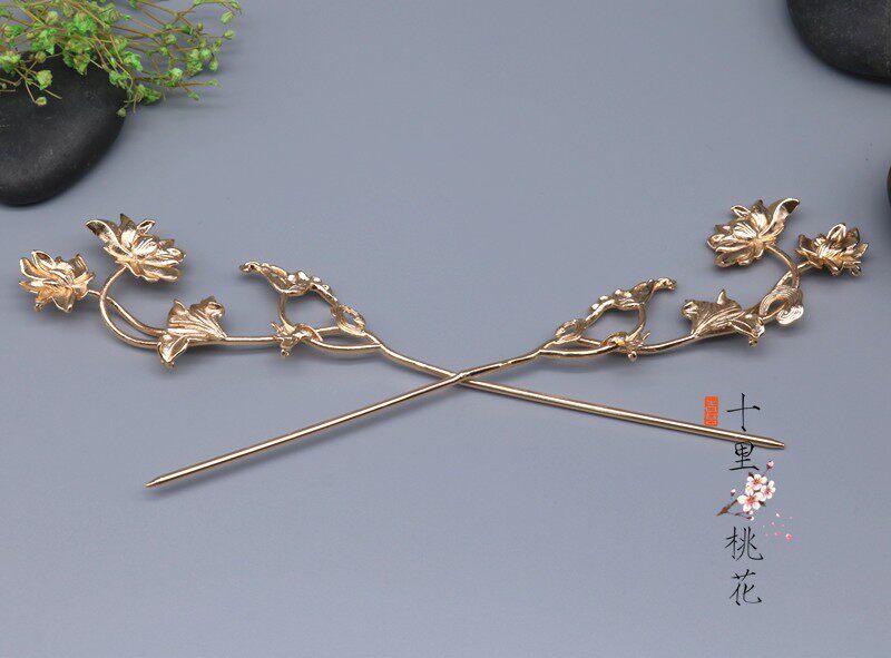 Ханьфу, китайская шпилька, медный аксессуар для волос, листья лотоса, 170×40мм