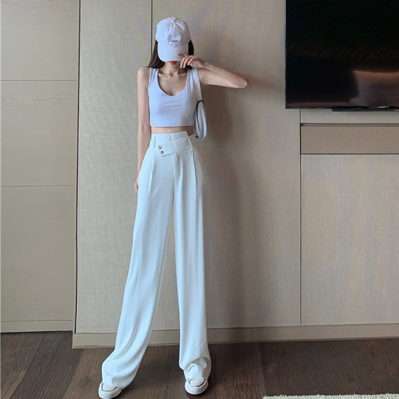 Штаны, белый дизайнерский пиджак классического кроя, высокая талия, тренд сезона, свободный прямой крой