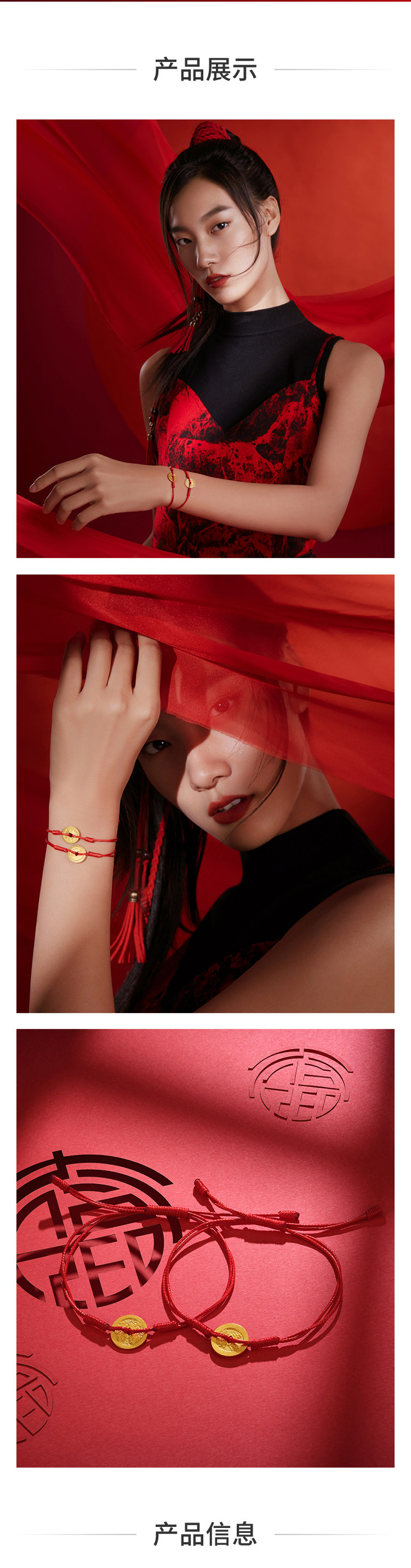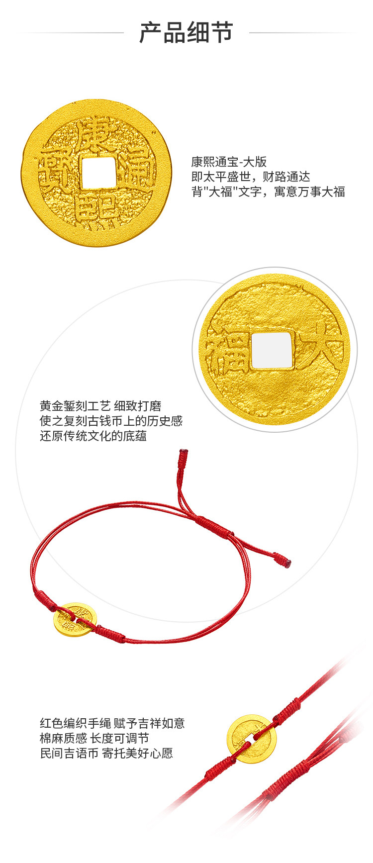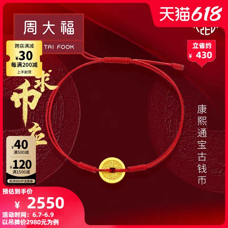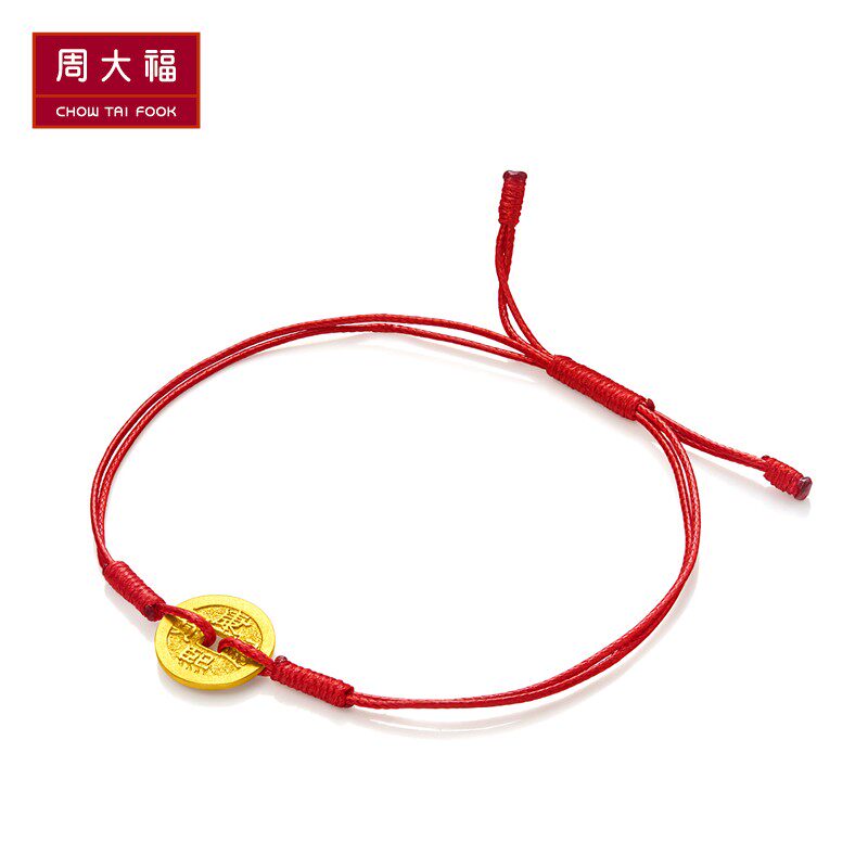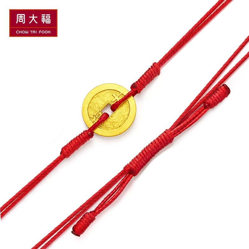 周大福 Ювелирное украшение, золотые монеты, браслет из красной нити