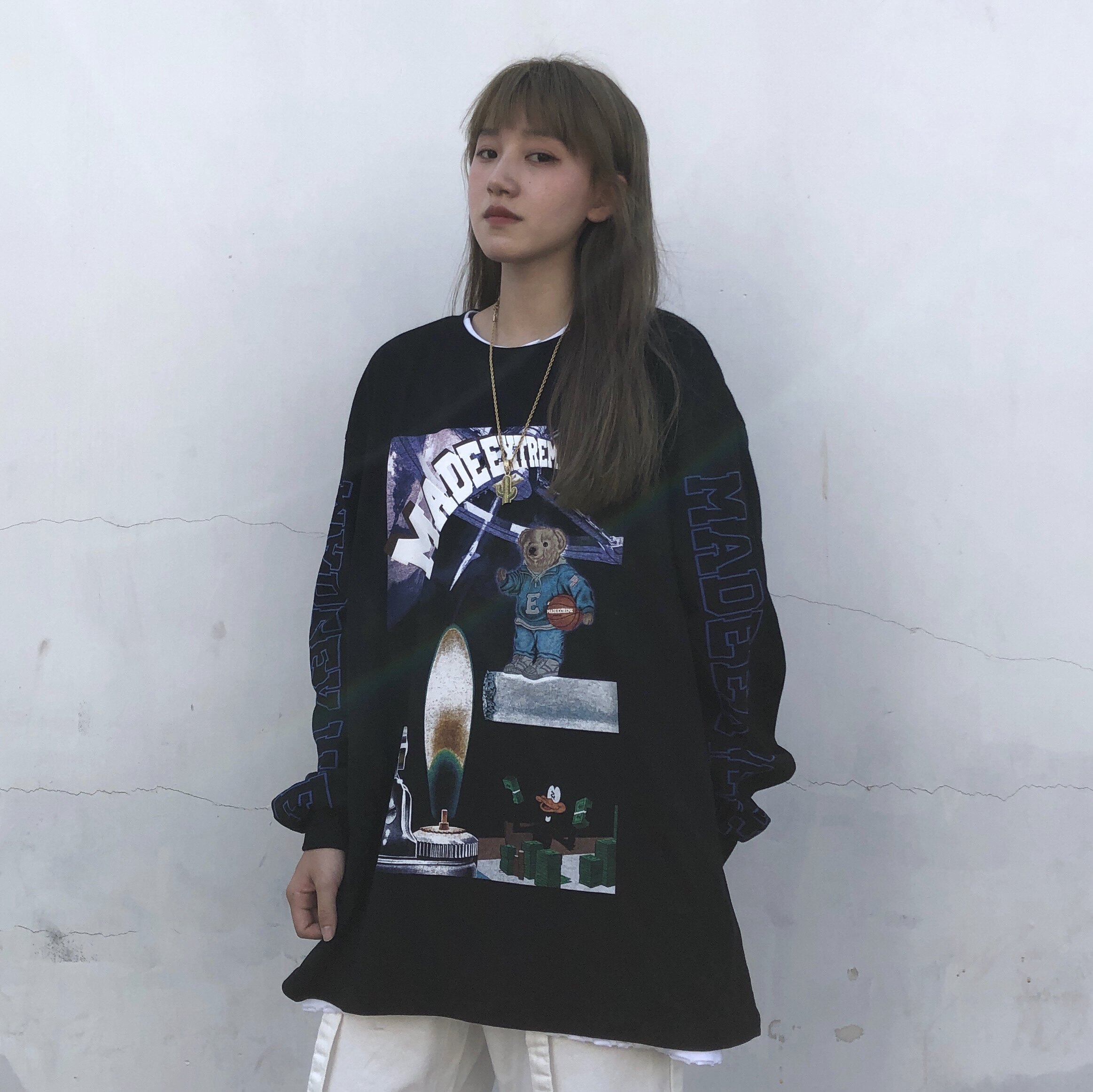 Мультяшный осенний лонгслив, тонкая толстовка, с медвежатами, свободный крой