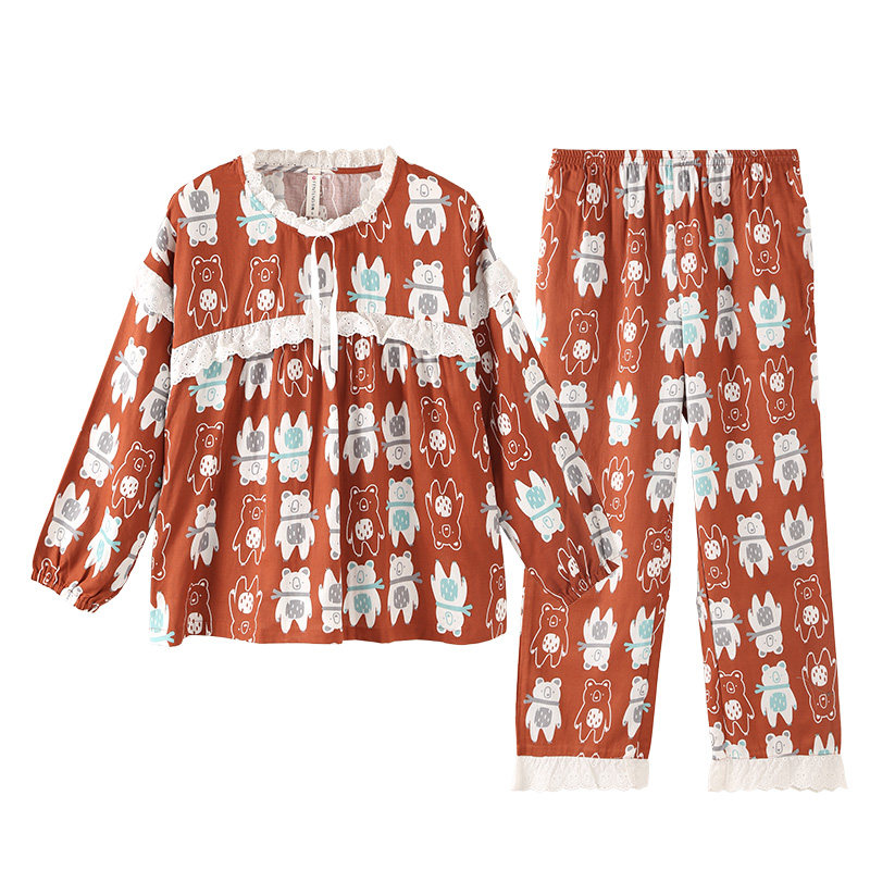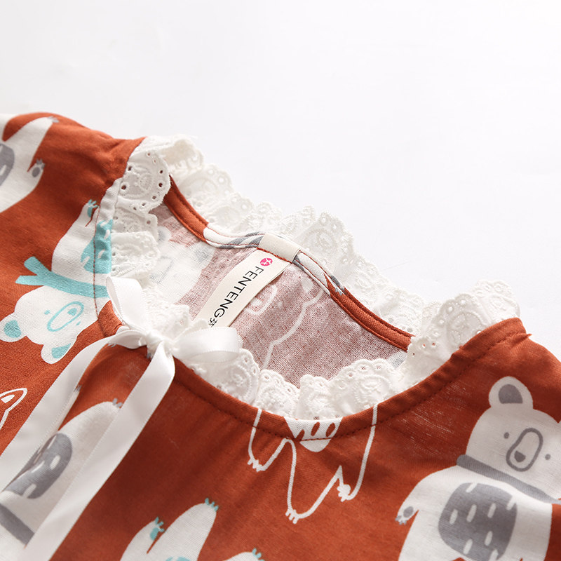 芬腾 Пижама, хлопковый лонгслив, мультяшные демисезонные хлопковые нарукавники, милый комплект, свободный крой