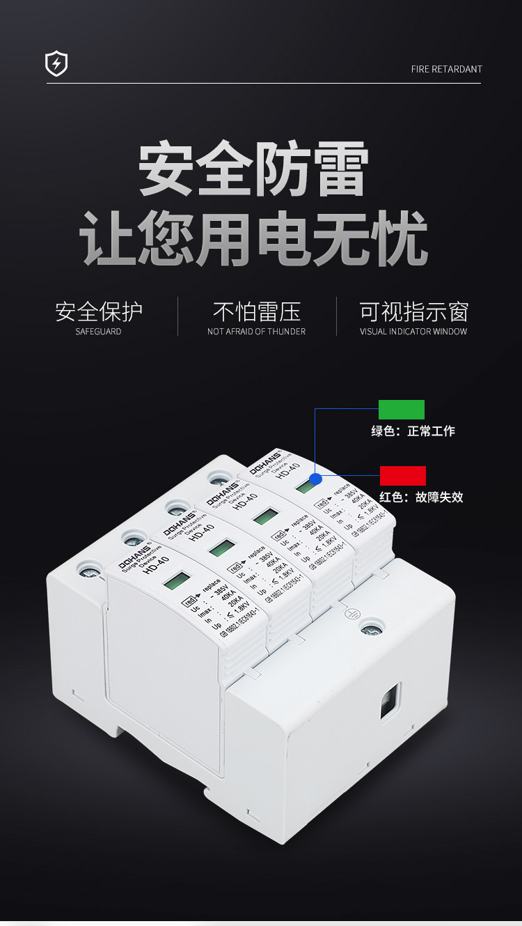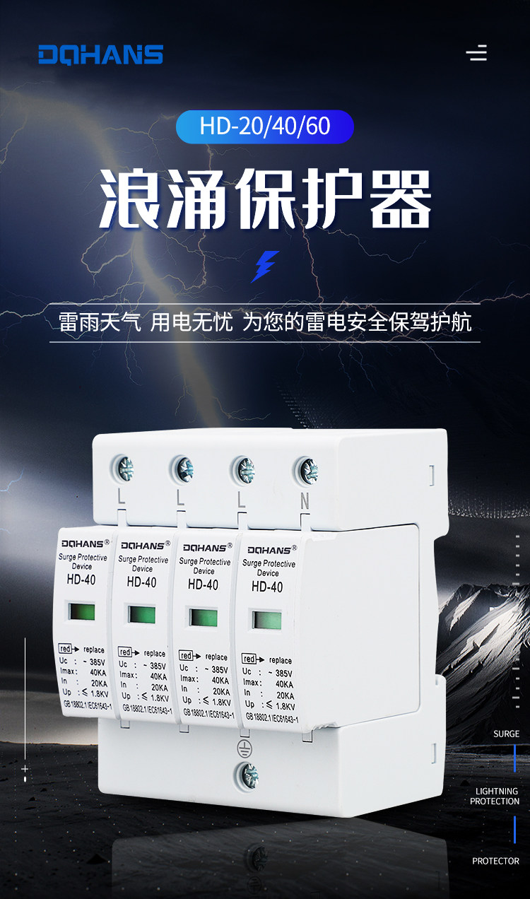 Langyong Protector Первый класс Home Lightning Anti -Lightning Protection 2P4P40KA Фотоэлектрическая электрическая защита от электричества