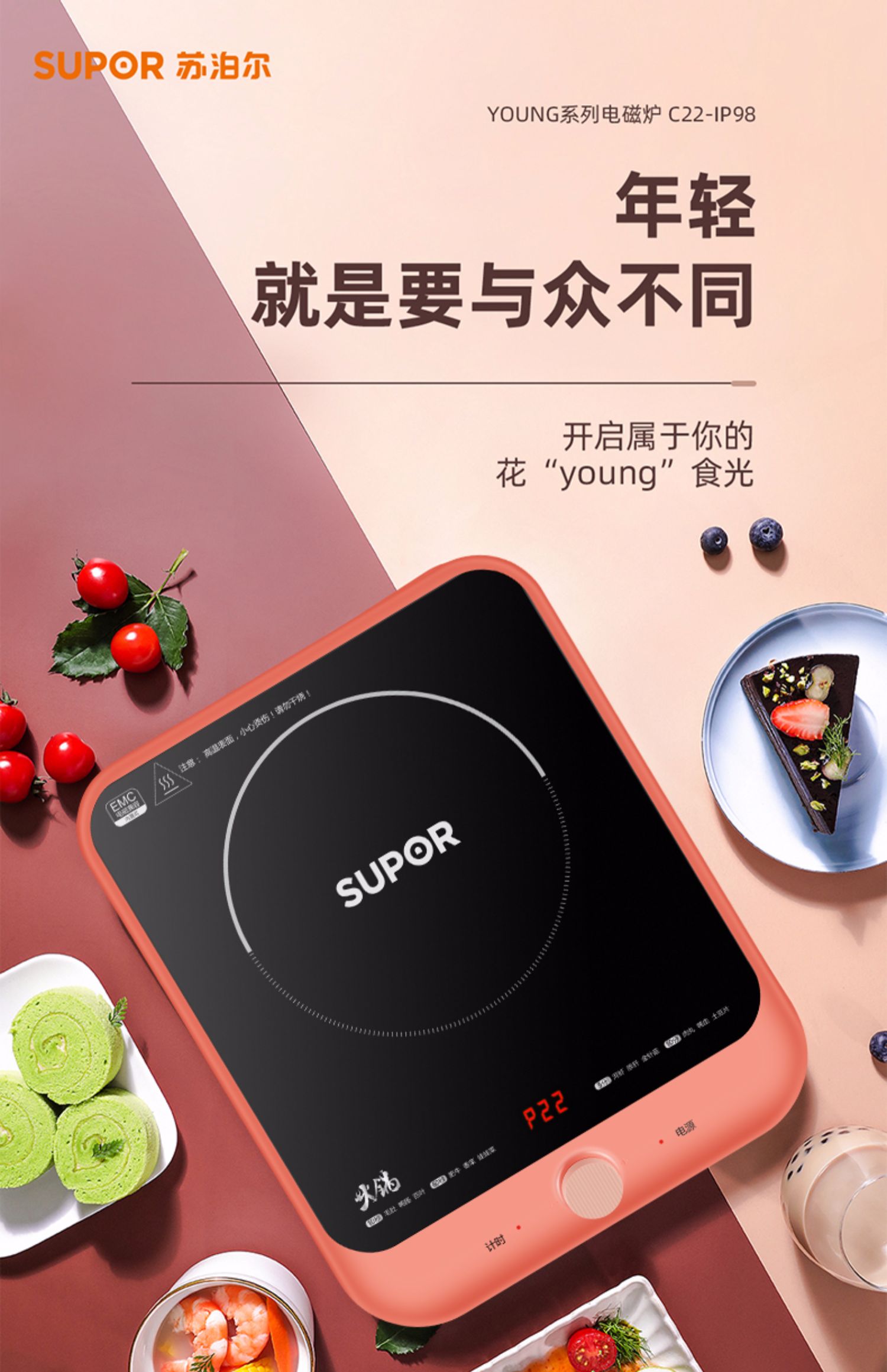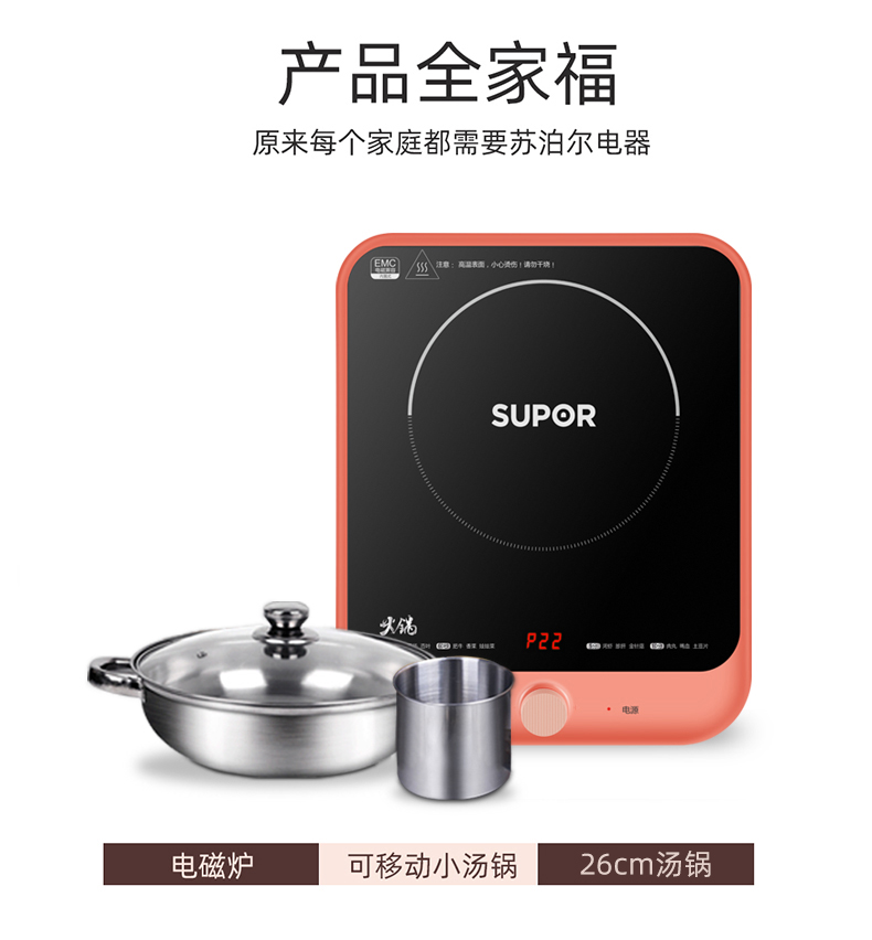 Индукционная плита Supor Домохозяйство TJAE -Фрэд горячий горшок с мульти -функцией -наполненная кулинарная горшка интегрированная с высокой энергией, способная малая батарейка