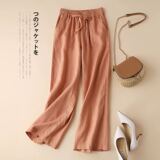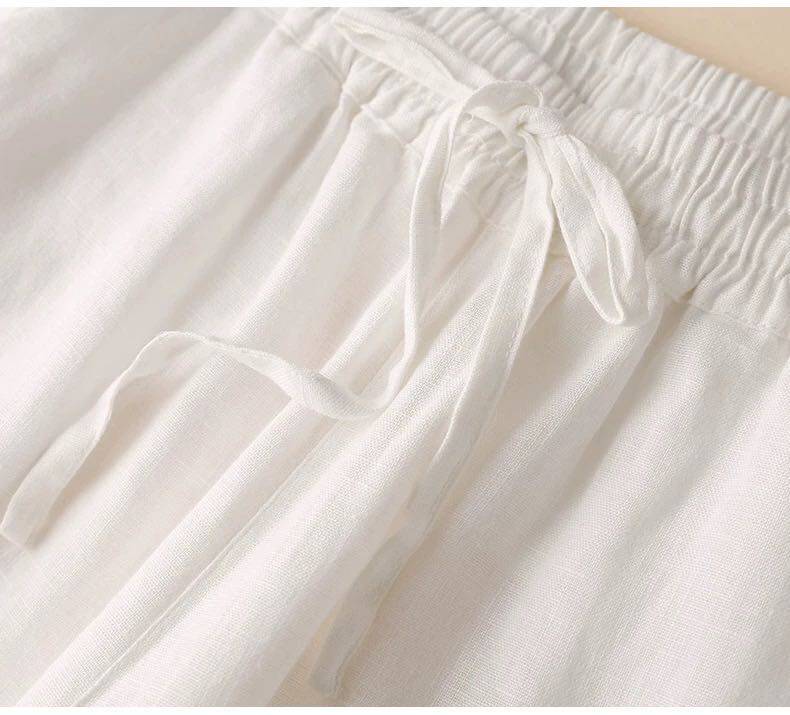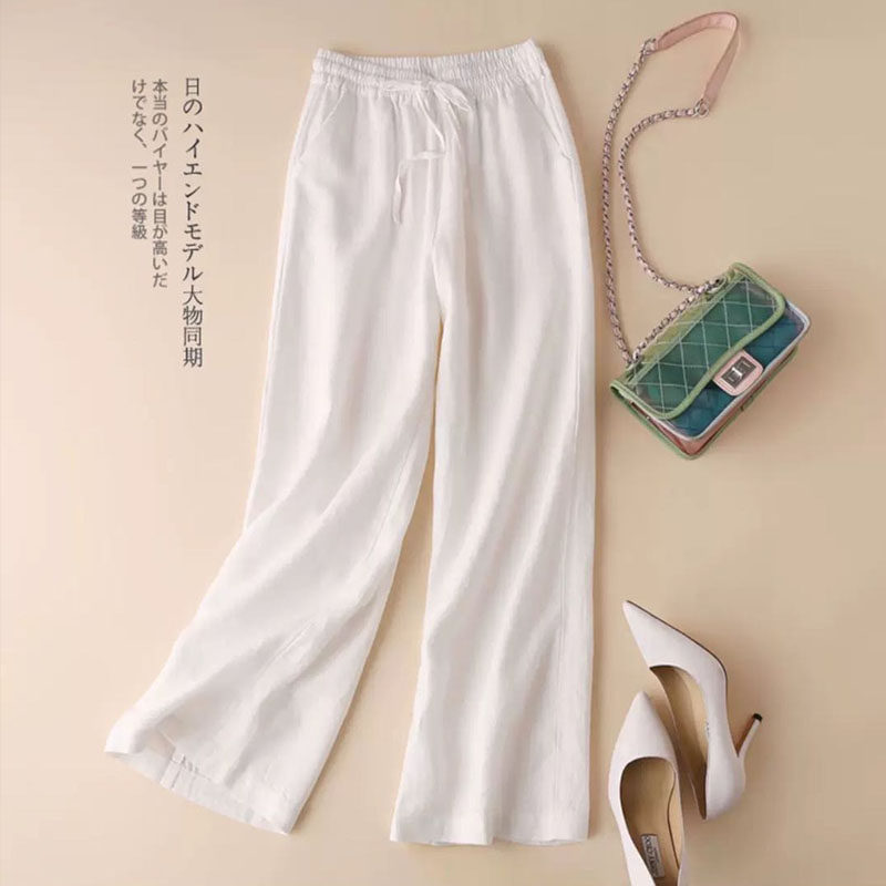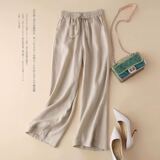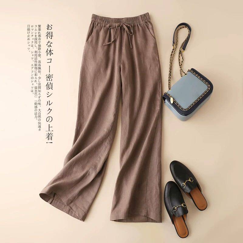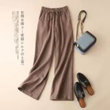 Осенние штаны, ретро леггинсы, из хлопка и льна, высокая талия, на шнурках