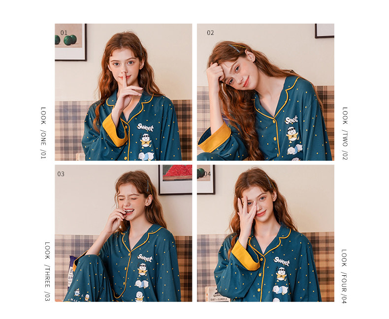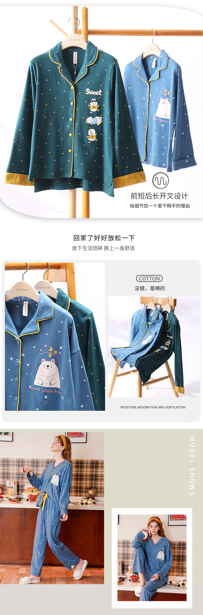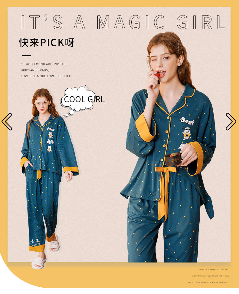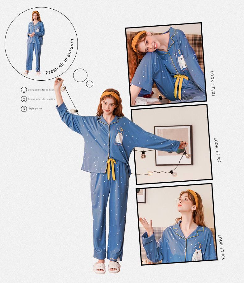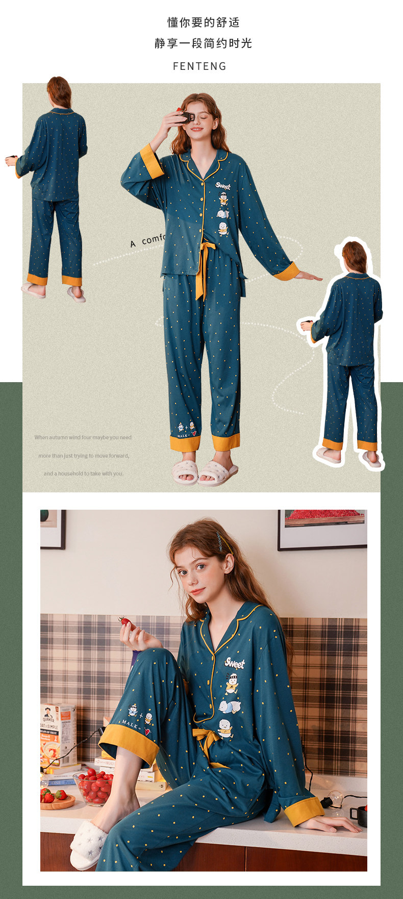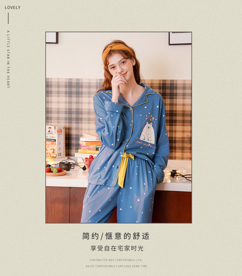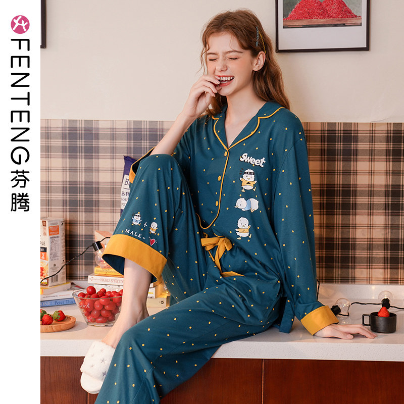 芬腾 Демисезонная осенняя пижама, хлопковый лонгслив, милый кардиган, комплект