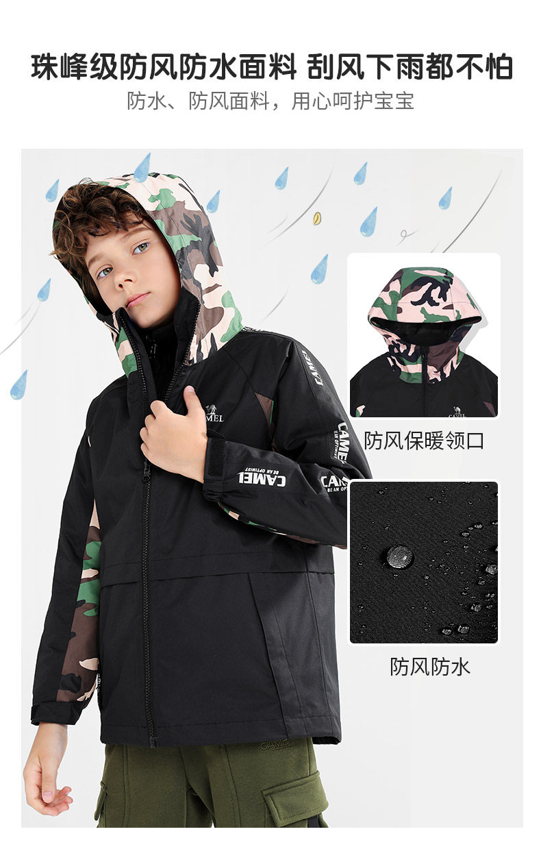 Детская демисезонная куртка, детское термобелье, камуфляжный плащ подходит для мужчин и женщин, детская одежда, «три в одном»