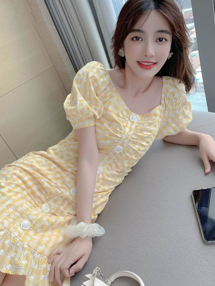 Короткое платье, летняя юбка, подходит для подростков, французский стиль, в цветочек, яркий броский стиль, коллекция 2023