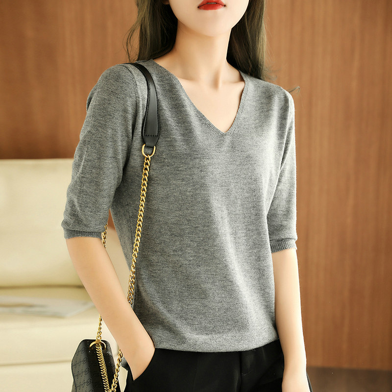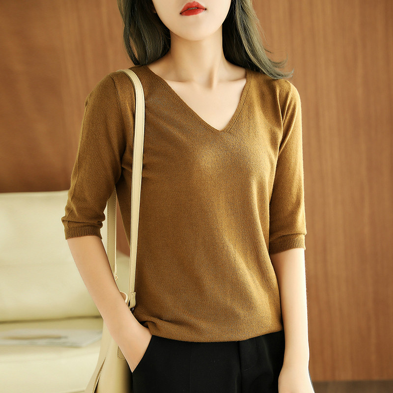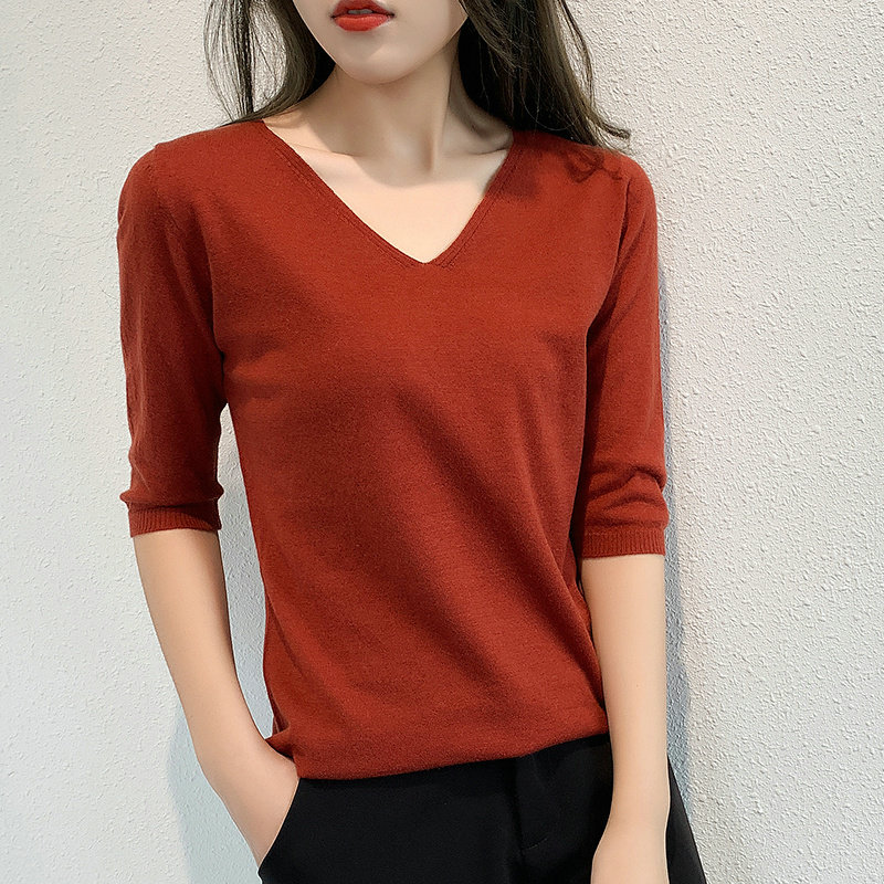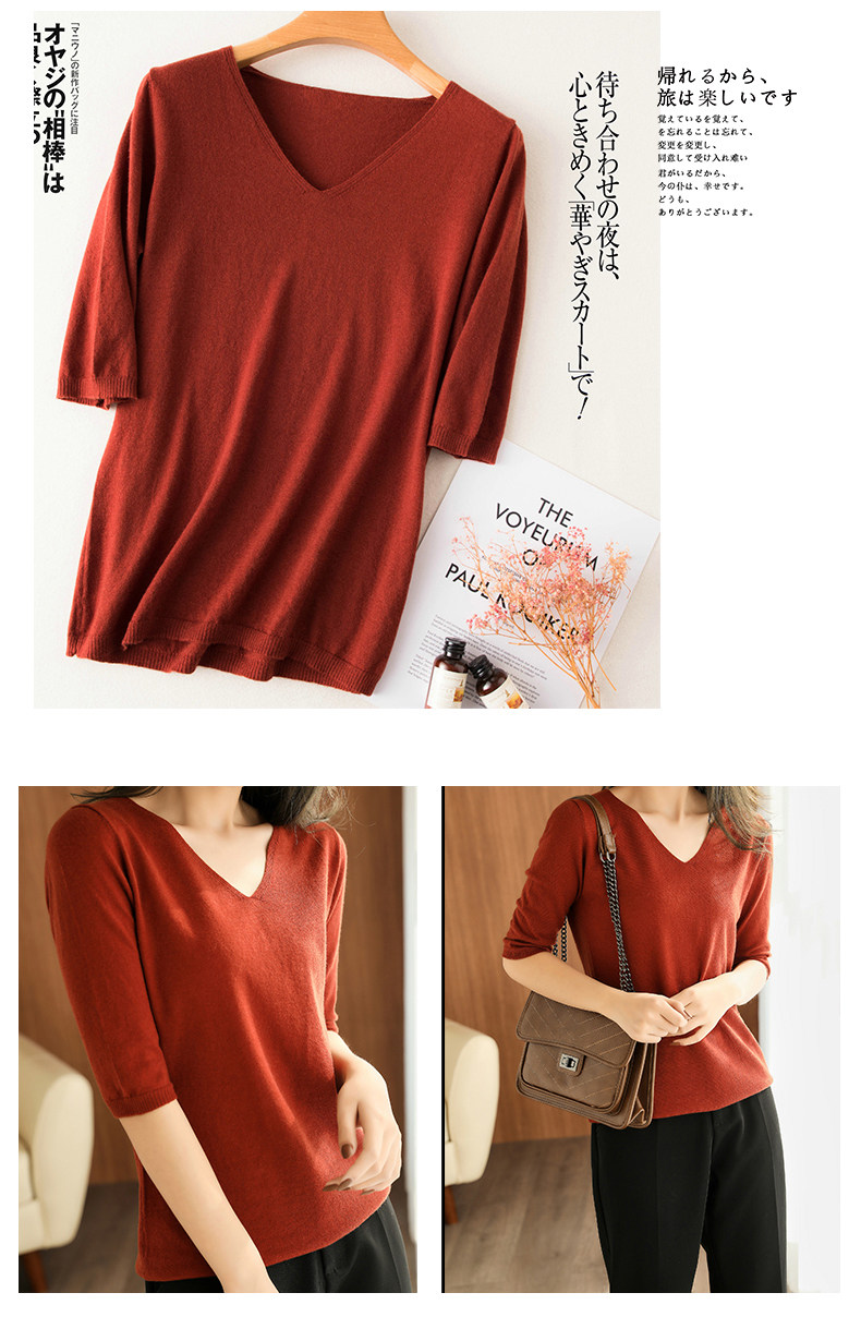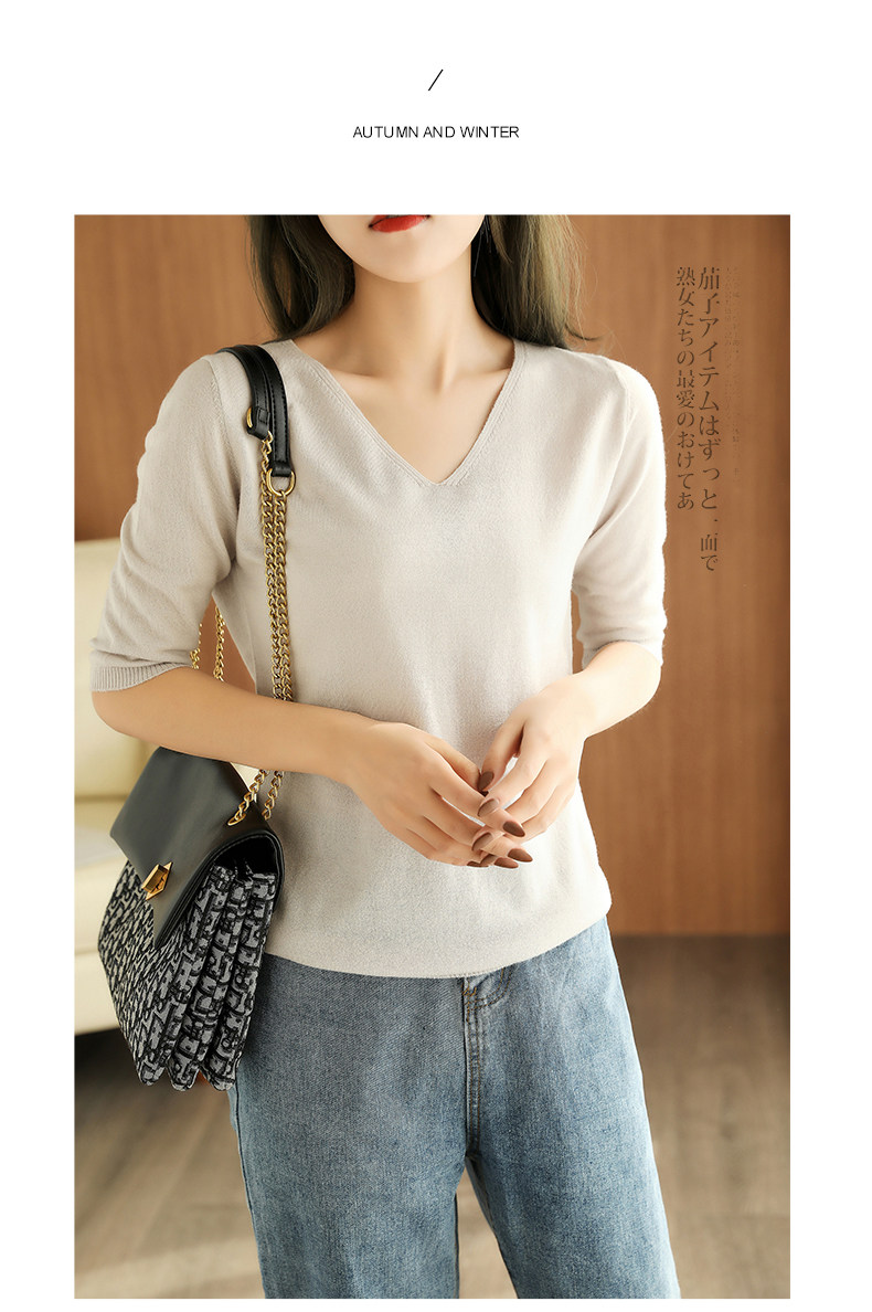 Осенний трикотажный шерстяной свитер, 2020, V-образный вырез