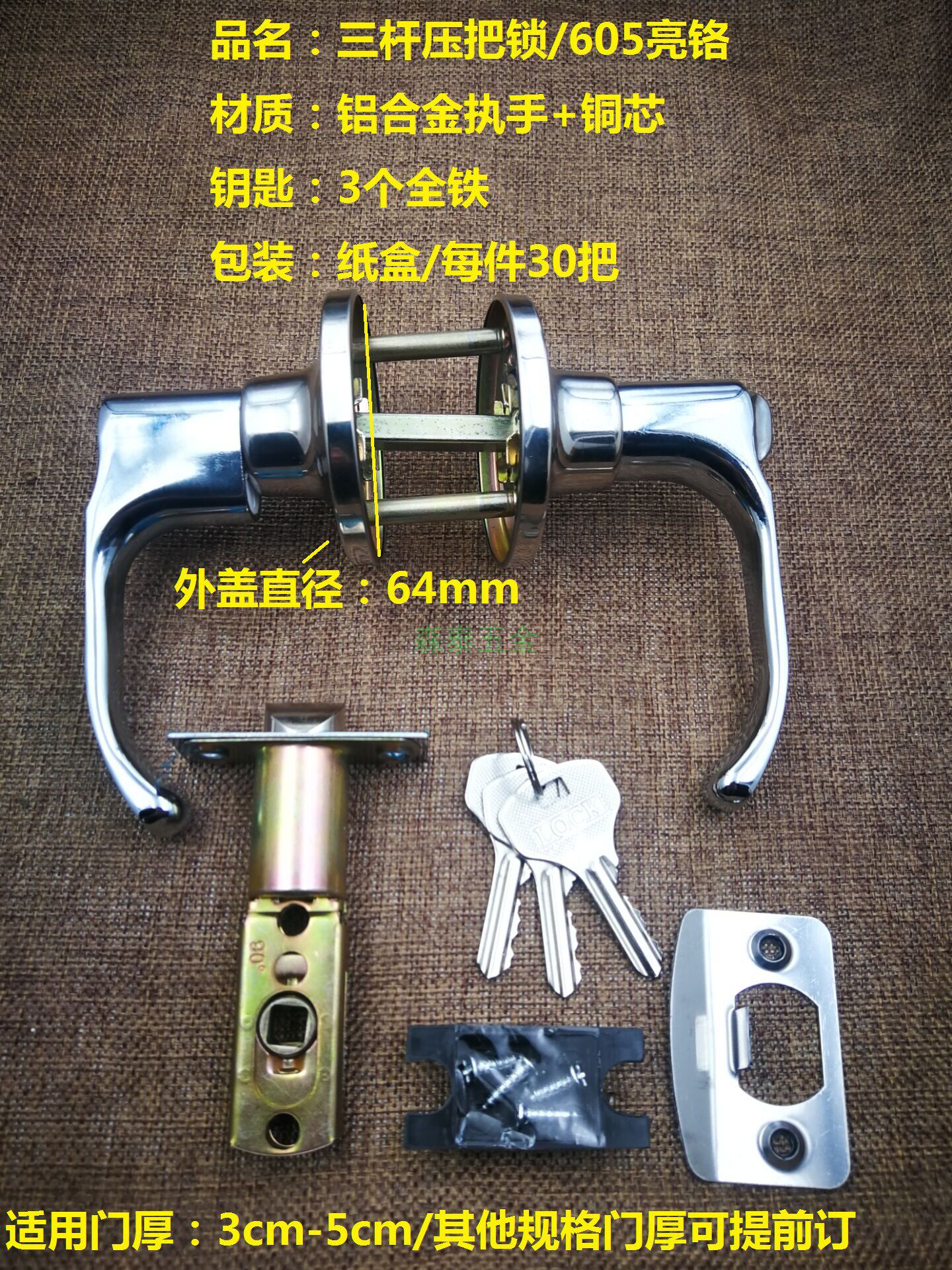 Три -точковое давление в пыли пыли -бездельник шариковой шар -в обработке дверной замок для спальни стальный столб колонна -тип ручной замок 605