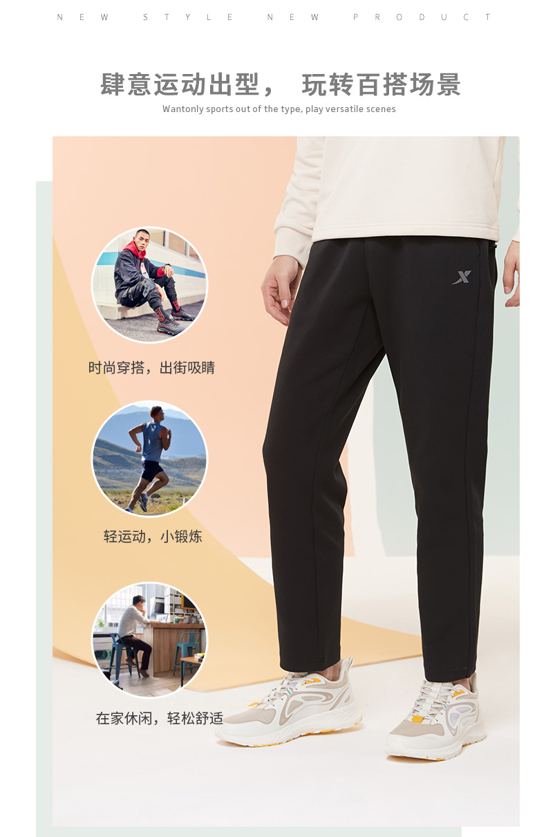 Xtep, демисезонные трикотажные штаны, повседневные брюки, свободный прямой крой