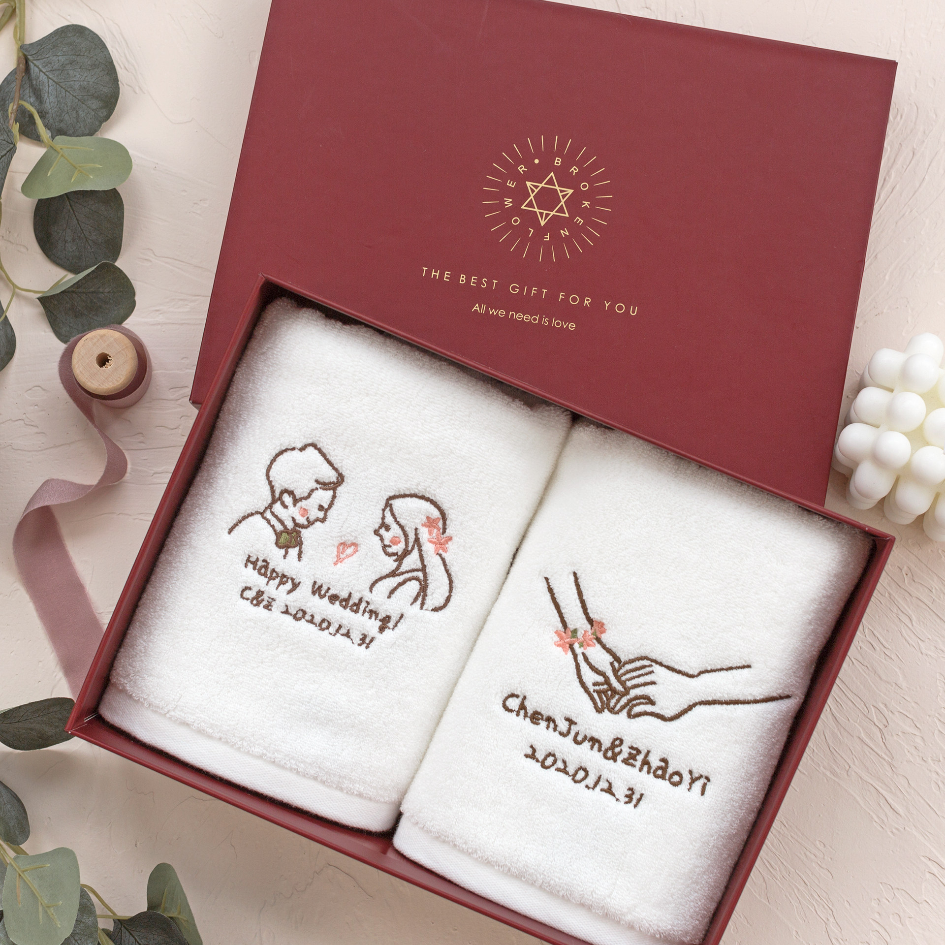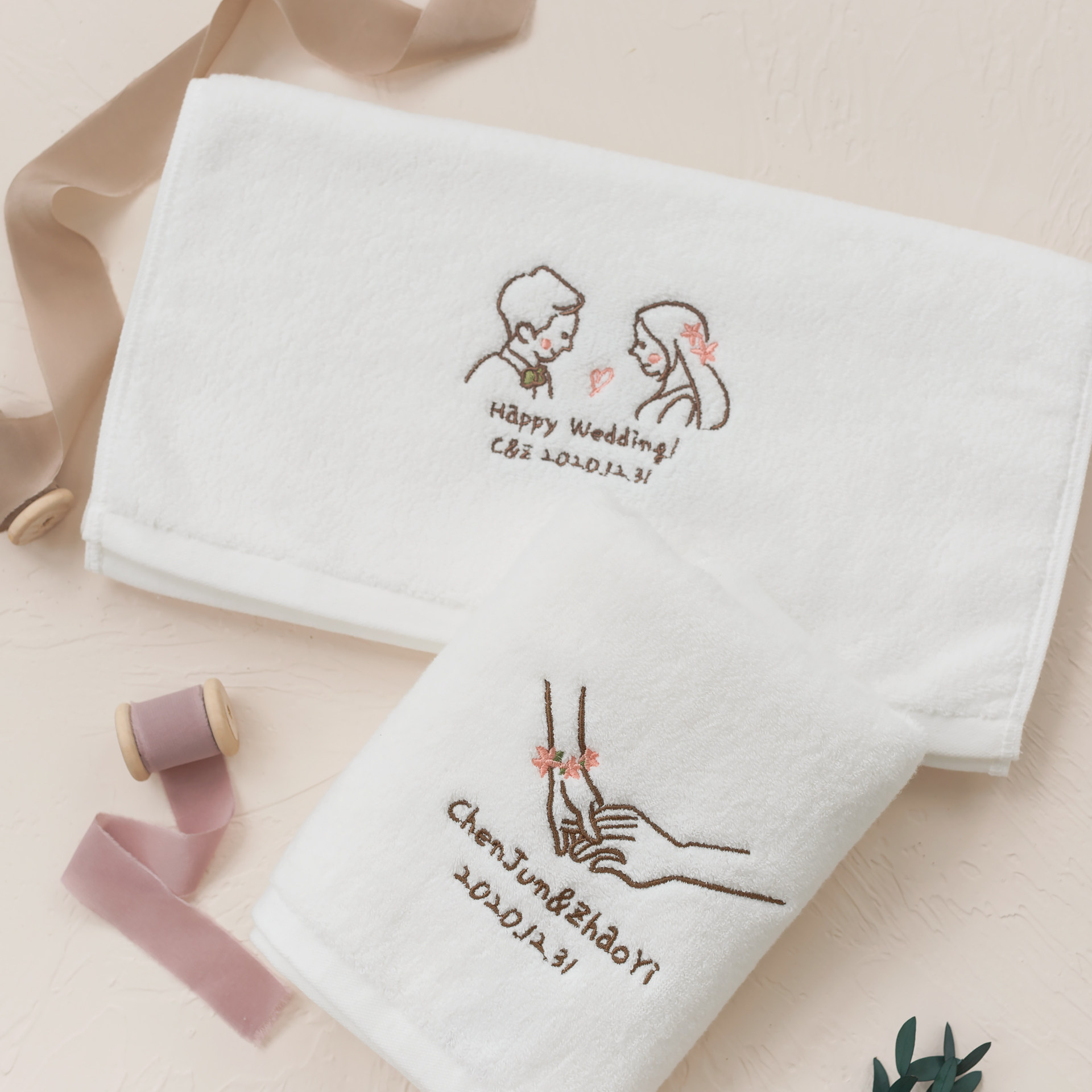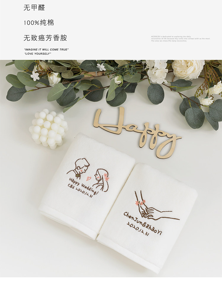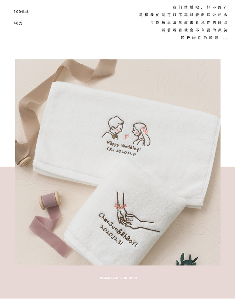 Хлопковое полотенце на день Святого Валентина, с вышивкой, делается под заказ, для влюбленных