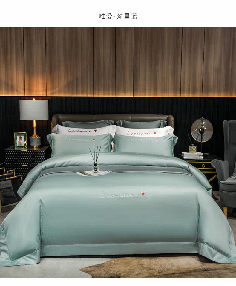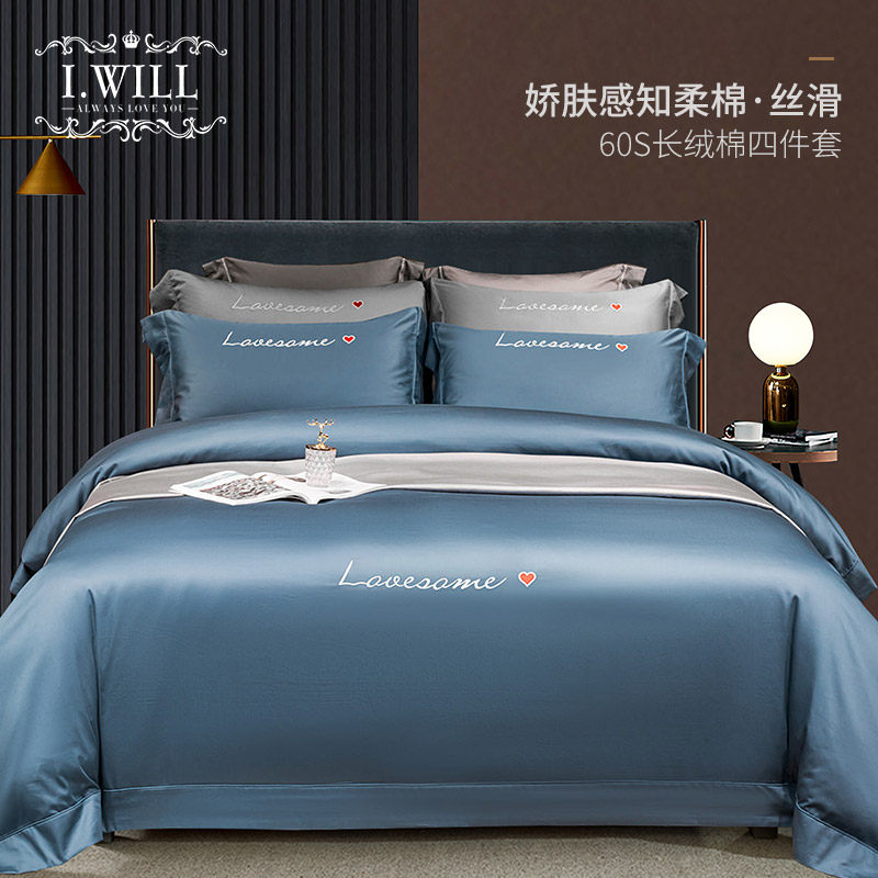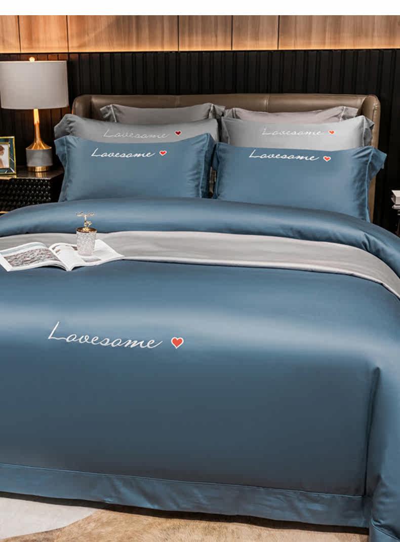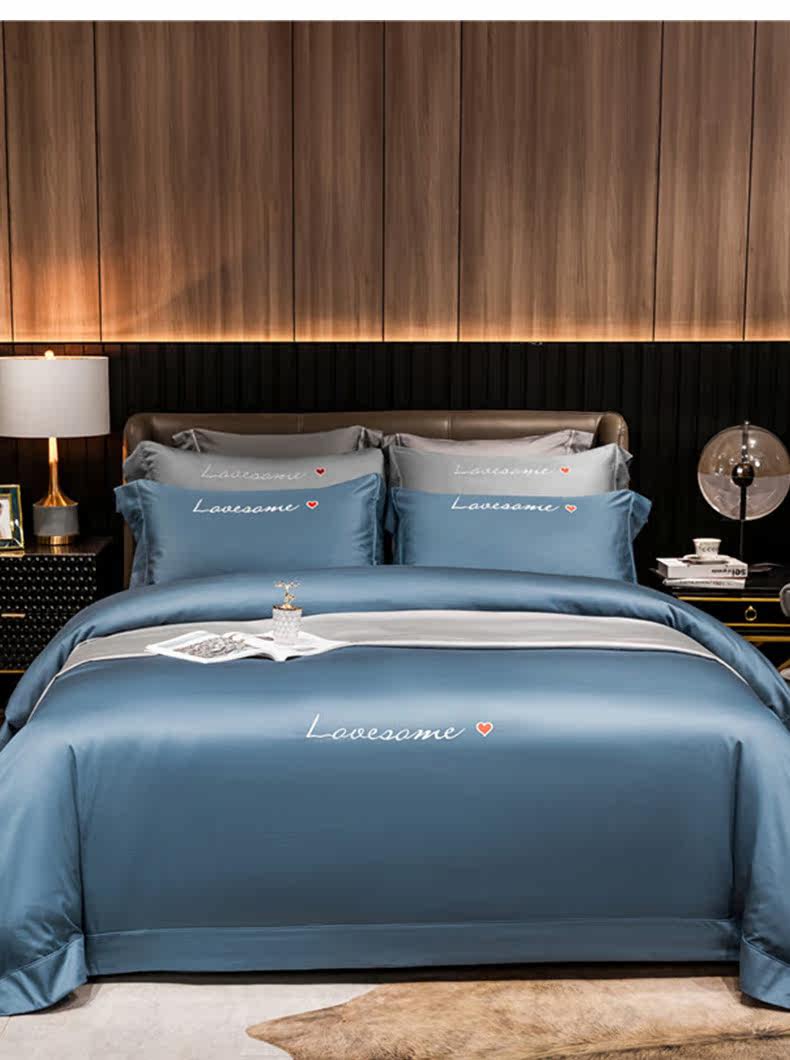 Хлопковый комплект, простыня, покрывало, 4 предмета, простой и элегантный дизайн, 60 шт, европейский стиль, с вышивкой
