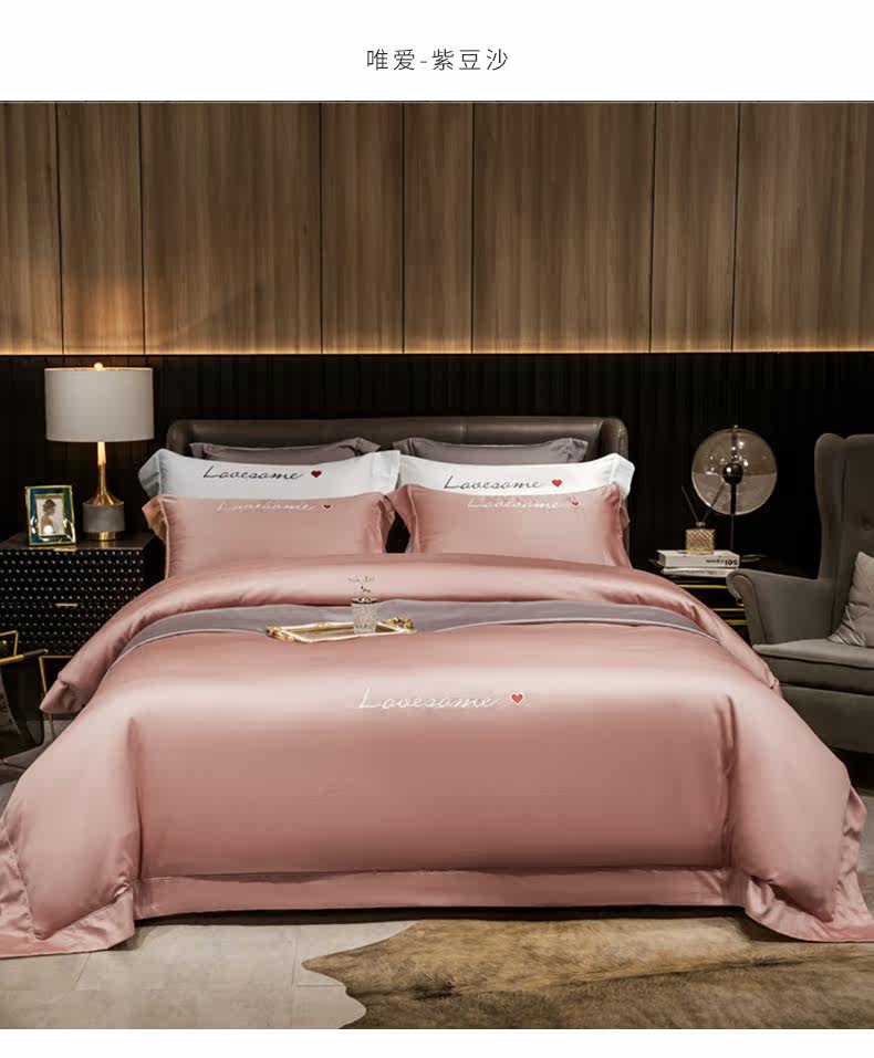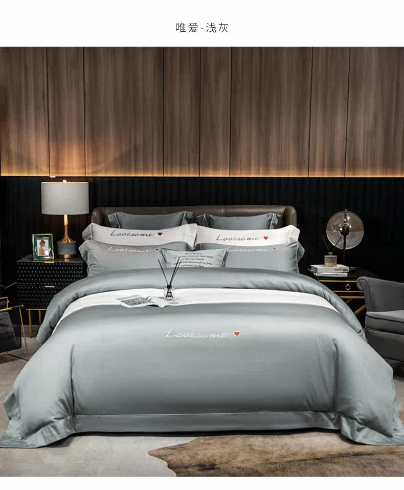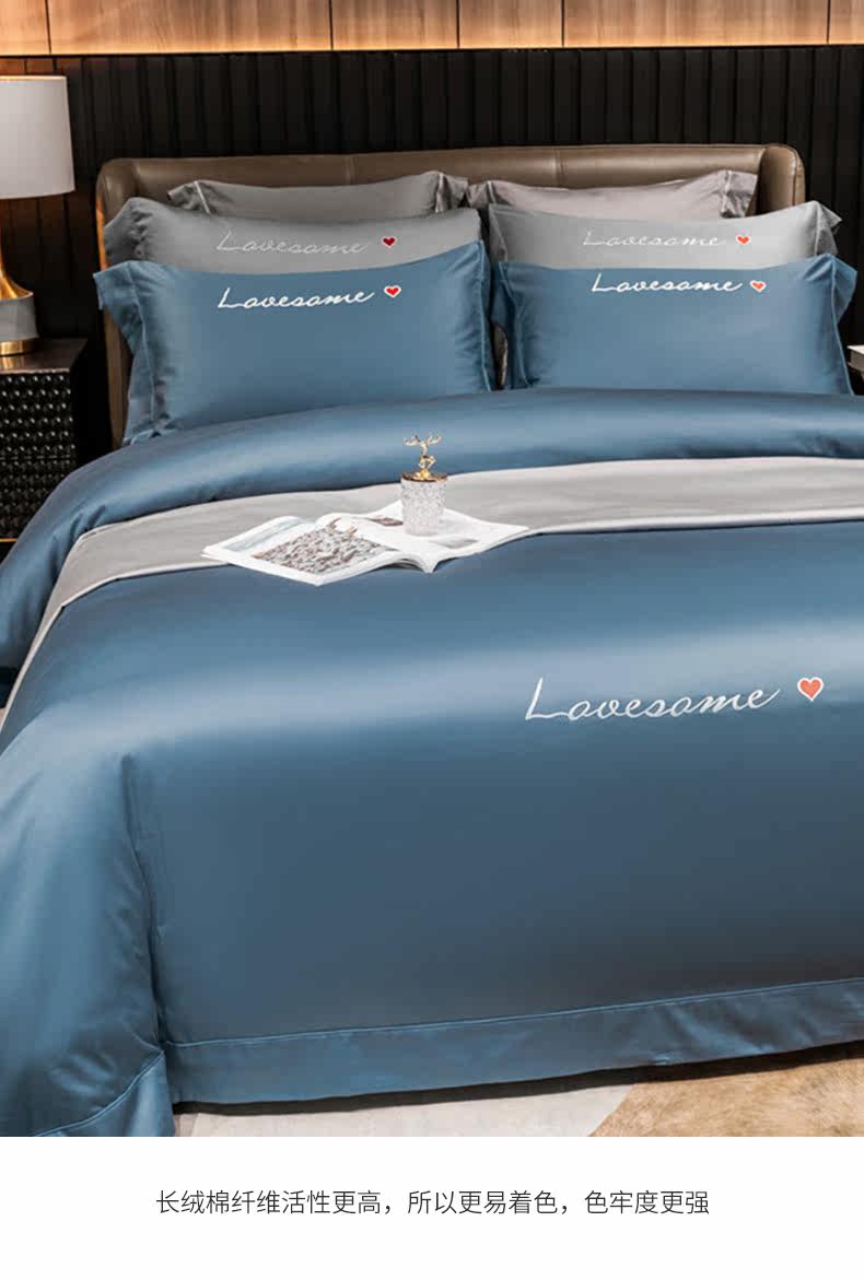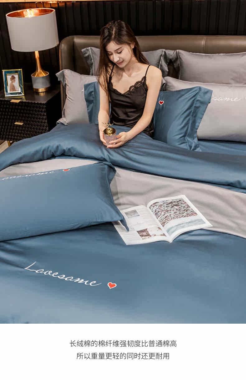 Хлопковый комплект, простыня, покрывало, 4 предмета, простой и элегантный дизайн, 60 шт, европейский стиль, с вышивкой
