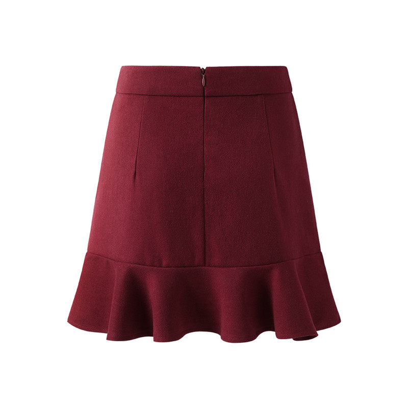 艾米恋 Шерстяная демисезонная юбка, сумка, рыбий хвост, с акцентом на бедрах, в корейском стиле