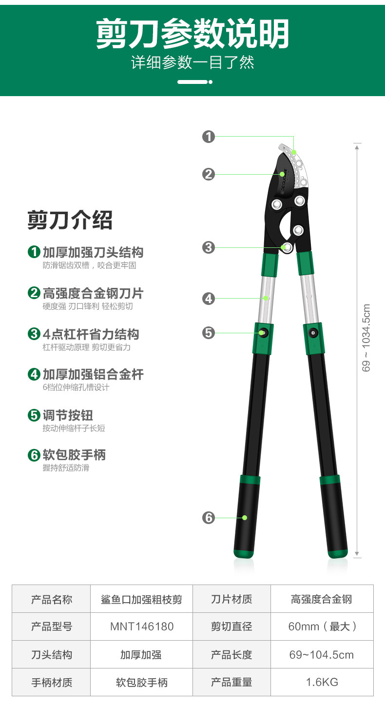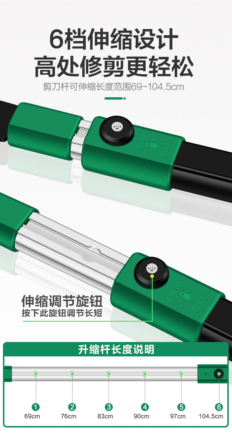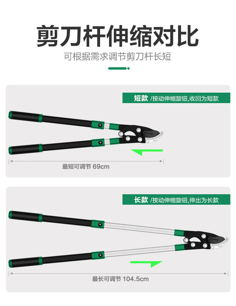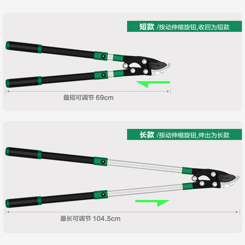 Садовое садоводство крупные ножницы Телескопические расширенные и сильно разрезанные толстые ветви и ветви, ветви и фруктовые деревья.