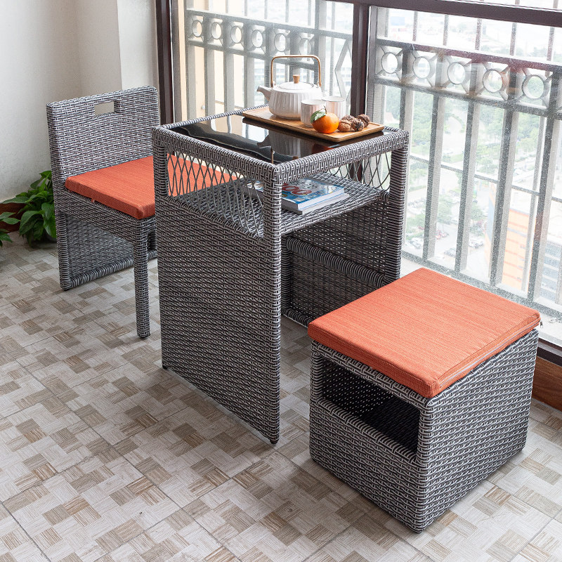 Стул на балконе, стул с виноградным стулом Трехно -части современный минималистский отдых на открытом воздухе маленький стул для кофейного столика