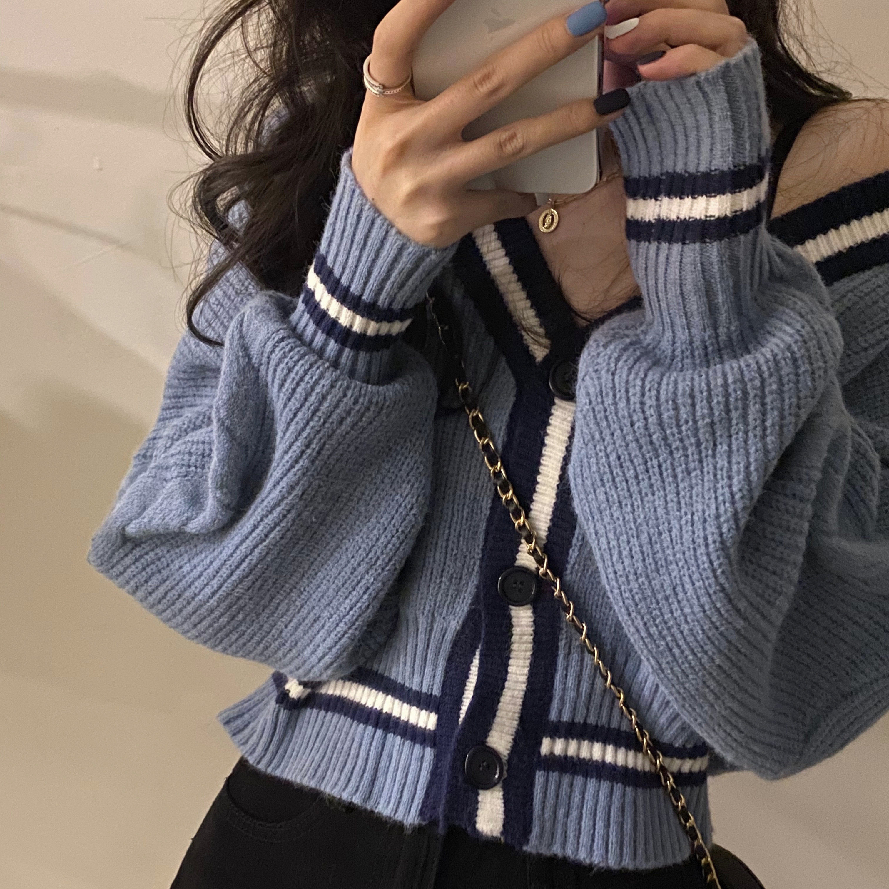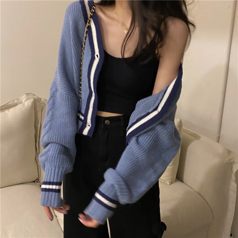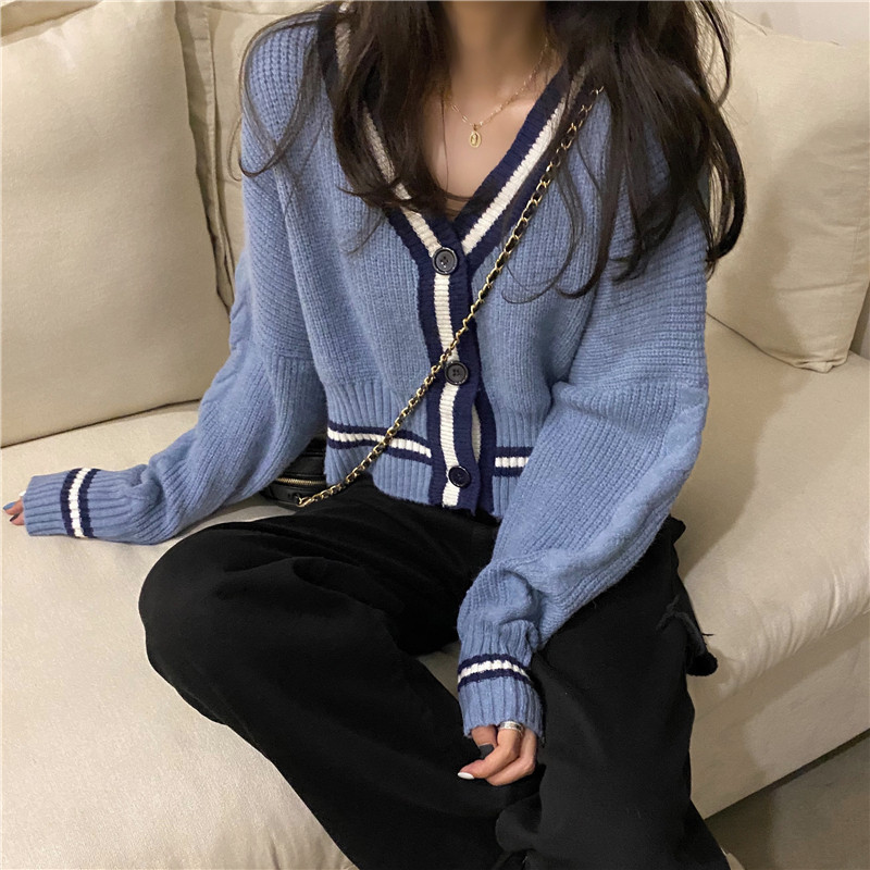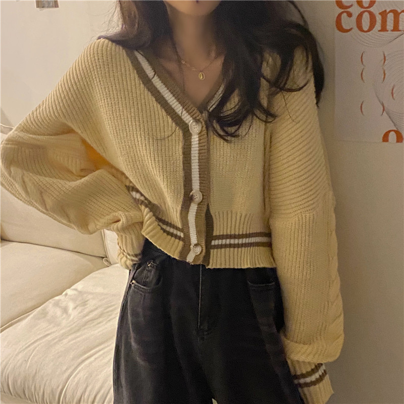 Осенний короткий кардиган, лонгслив, свитер, куртка, в корейском стиле, 2020, оверсайз, подходит для подростков, V-образный вырез