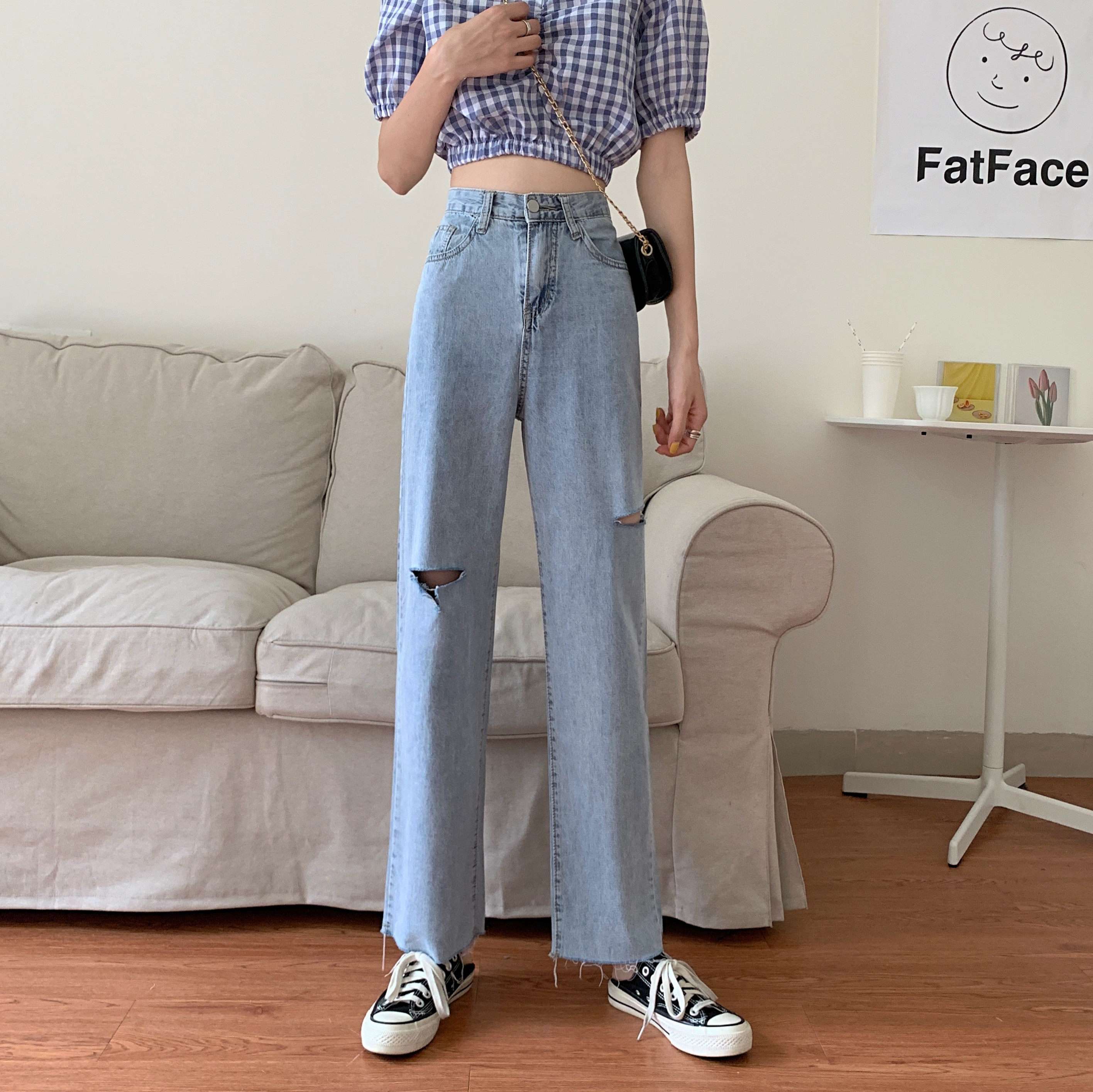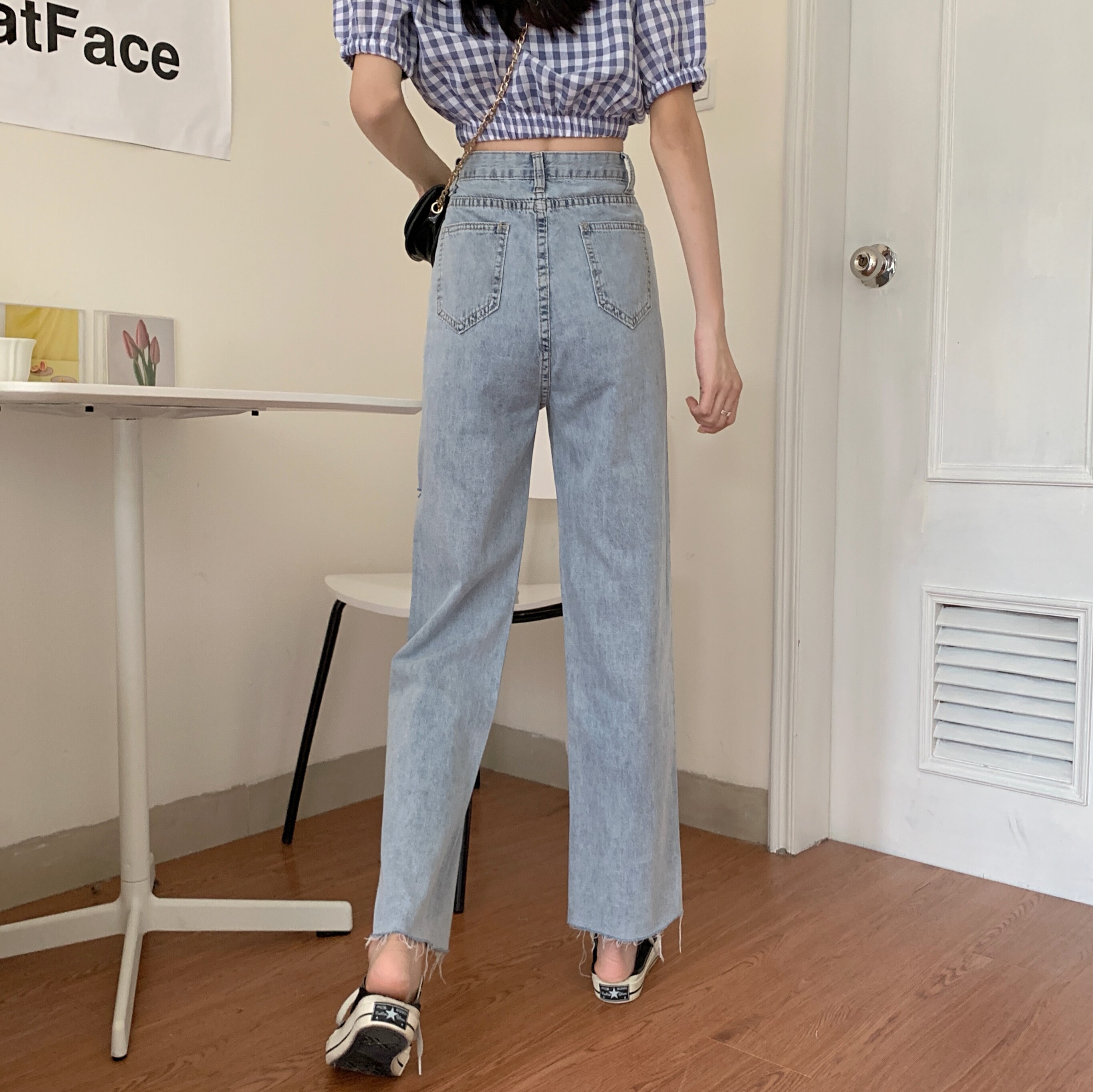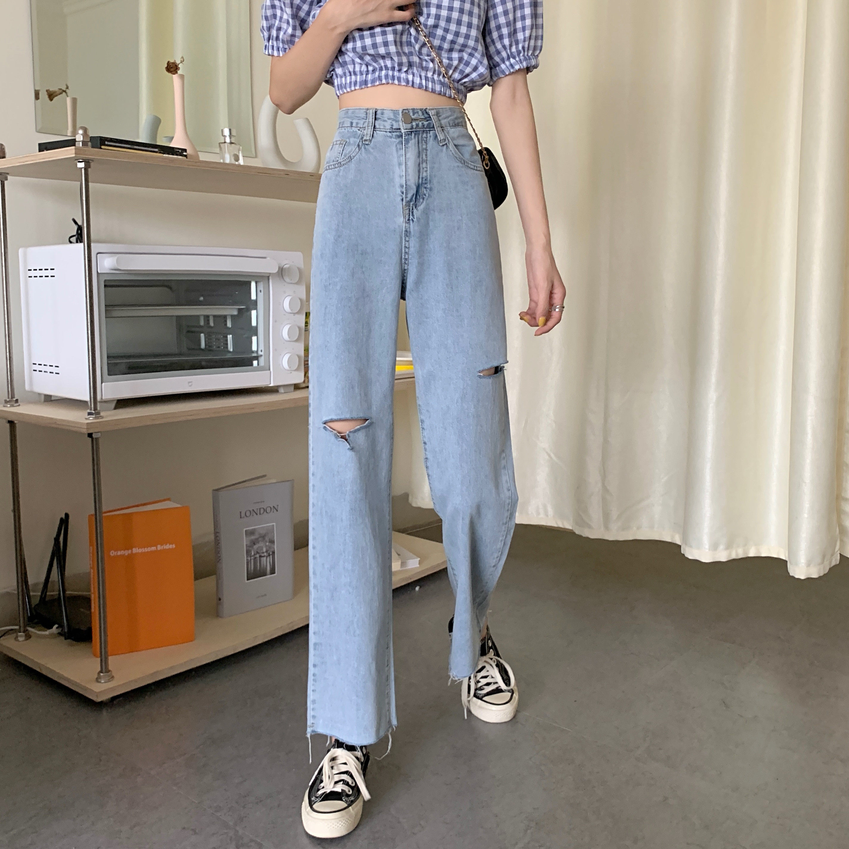 Осенние приталенные штаны, джинсы, 2021 года, большой размер, высокая талия, оверсайз, свободный прямой крой