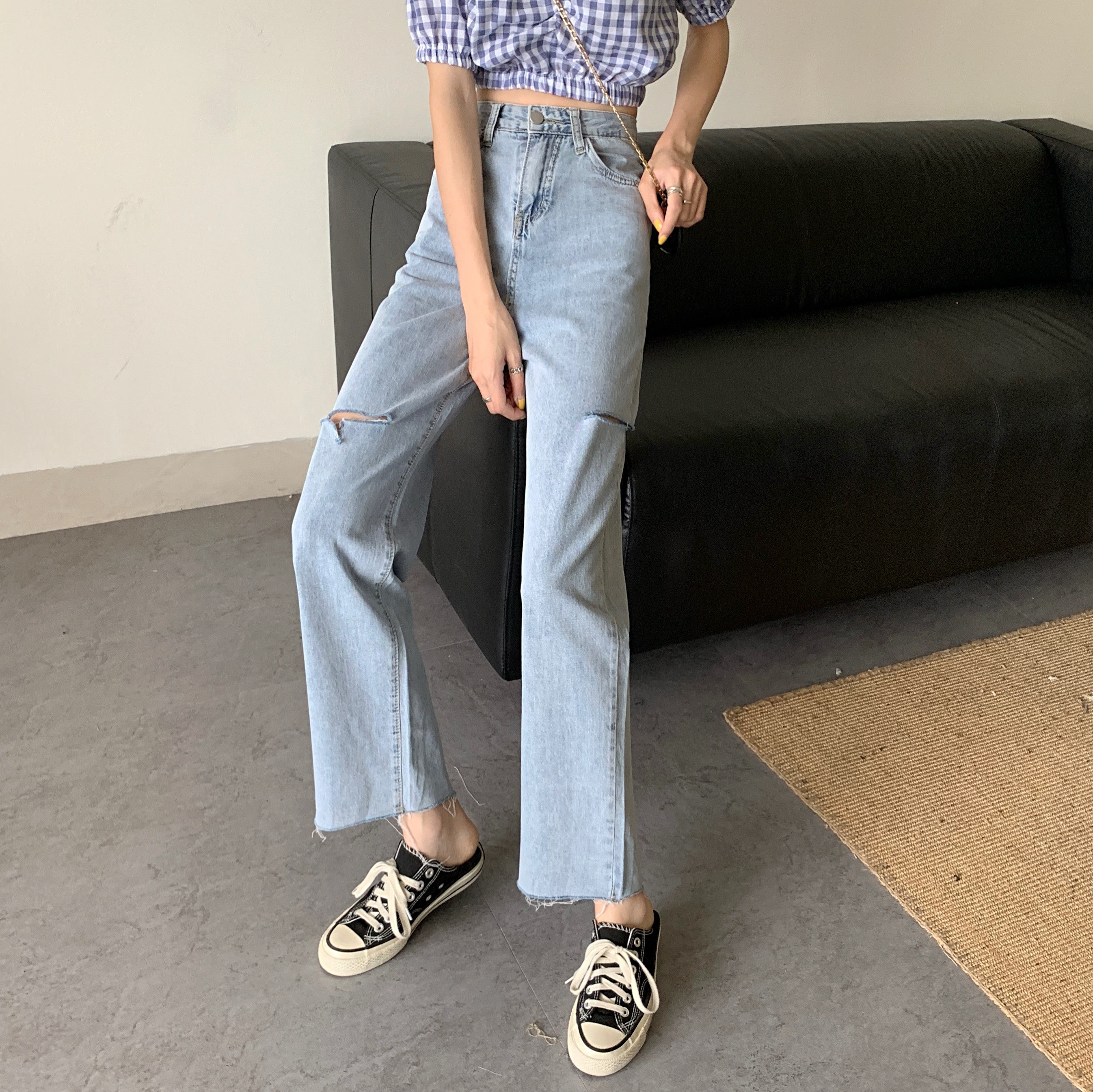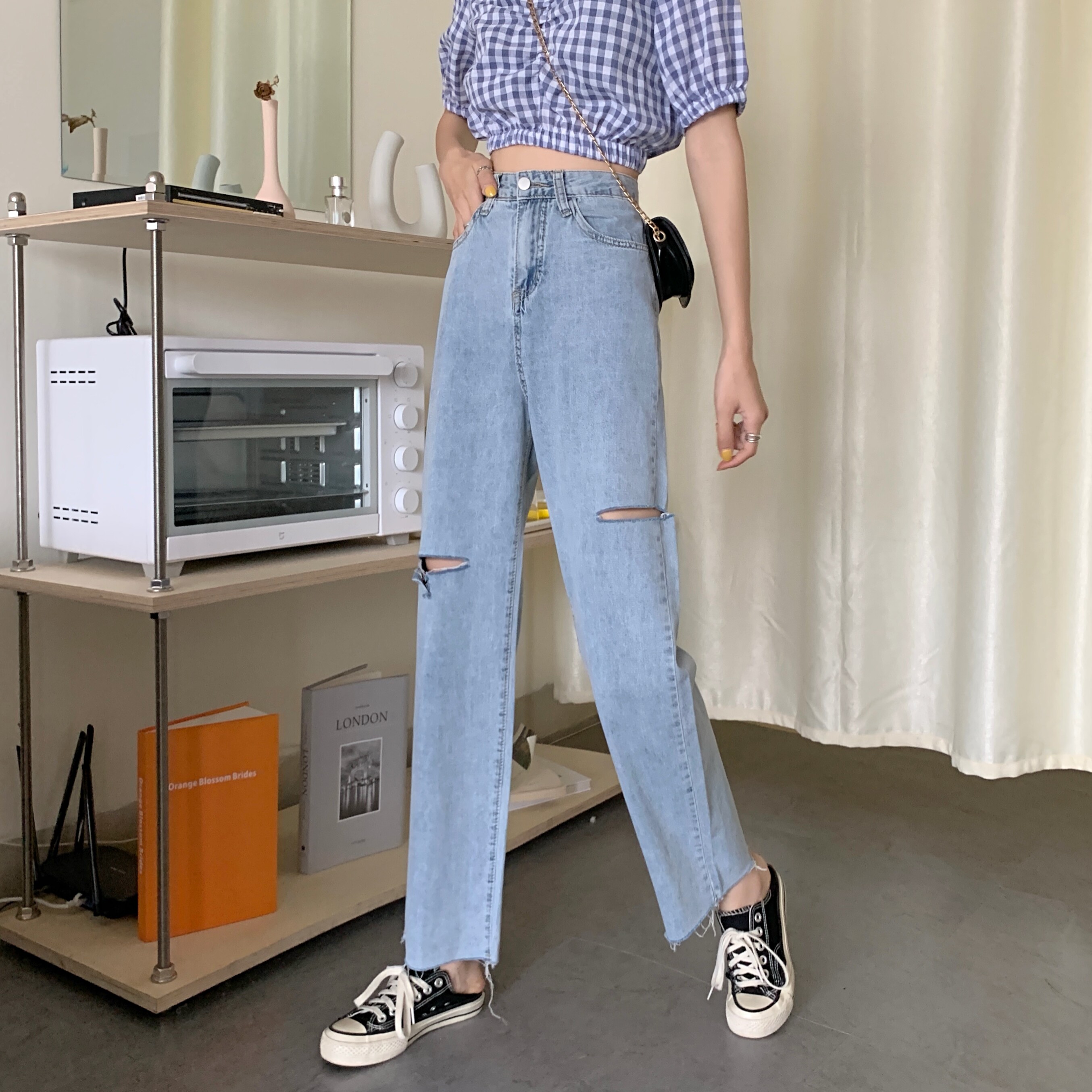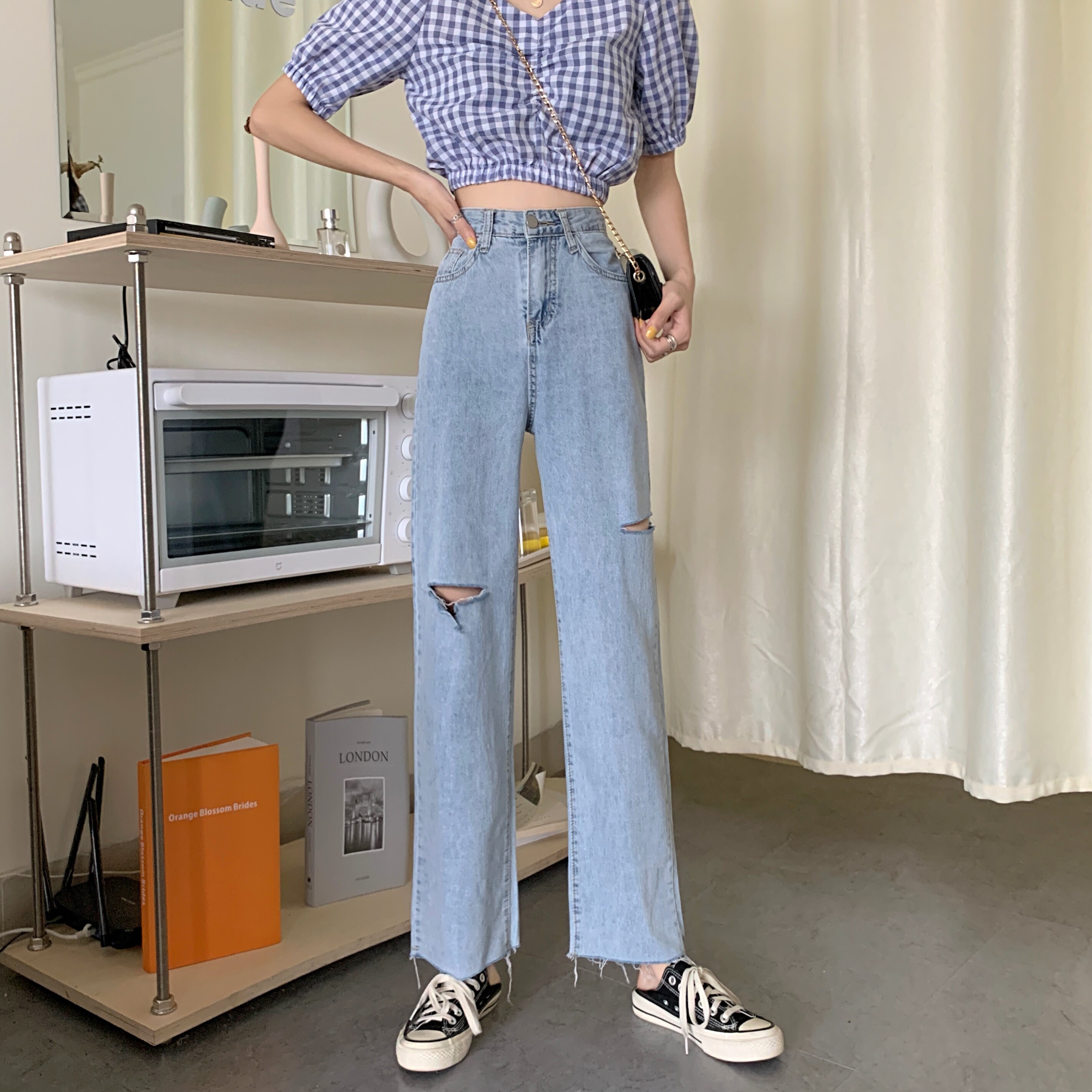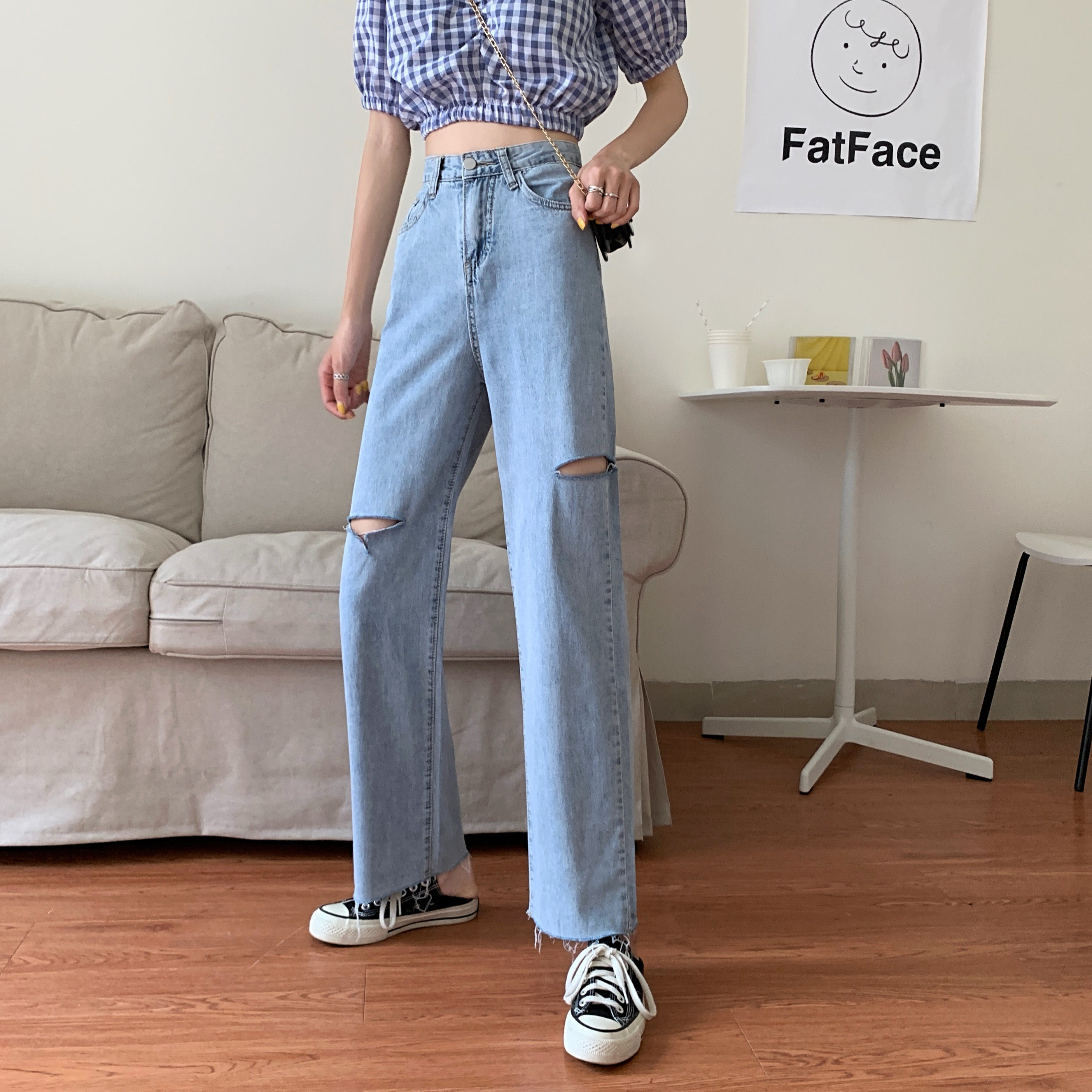 Осенние приталенные штаны, джинсы, 2021 года, большой размер, высокая талия, оверсайз, свободный прямой крой