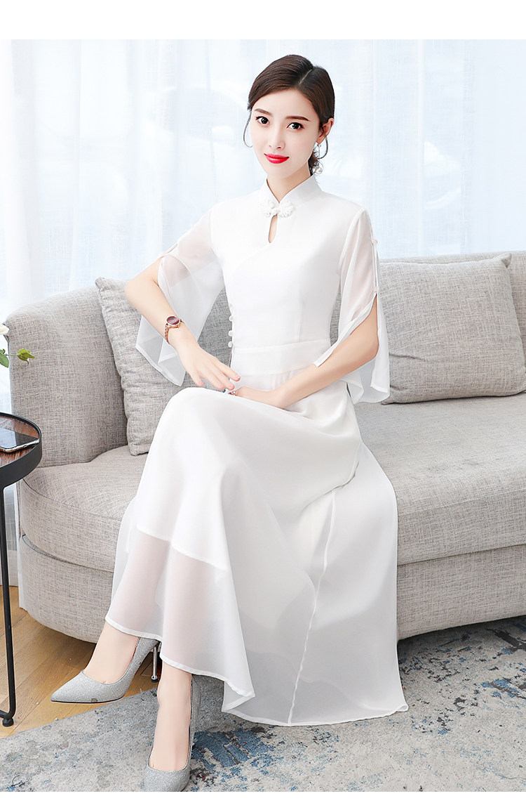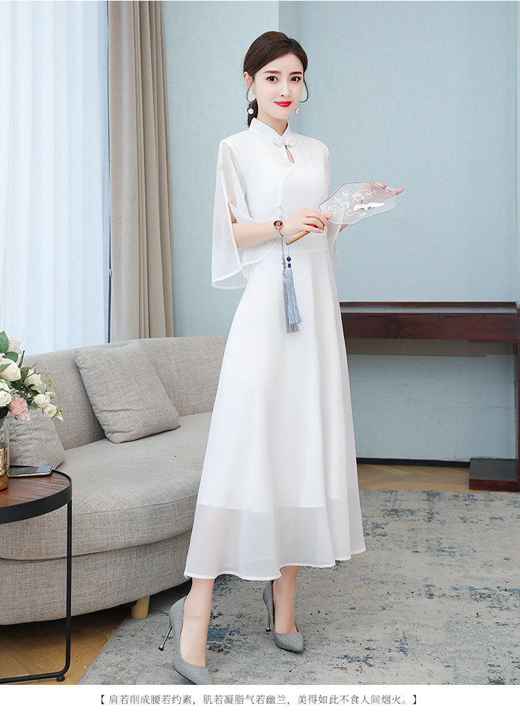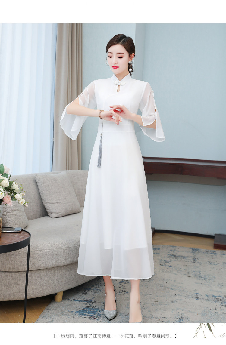 Летнее ципао, длинная цветная юбка, облегающий крой, средней длины
