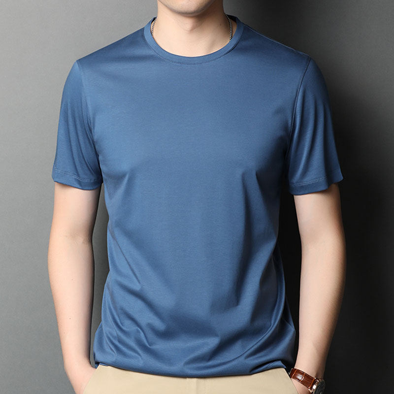 Летняя шелковая футболка, трендовый шелковый приятный телу лонгслив с круглым воротником