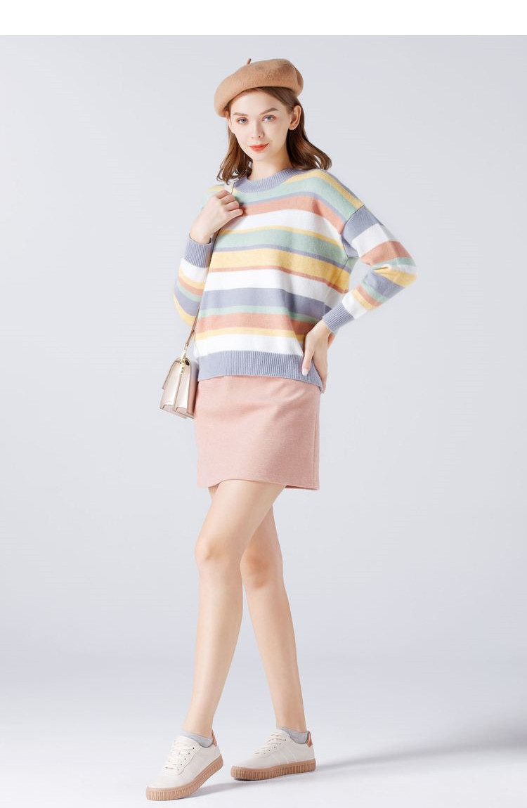 艾米恋 Радужный демисезонный свитер, трикотажное японское термобелье, свободный крой