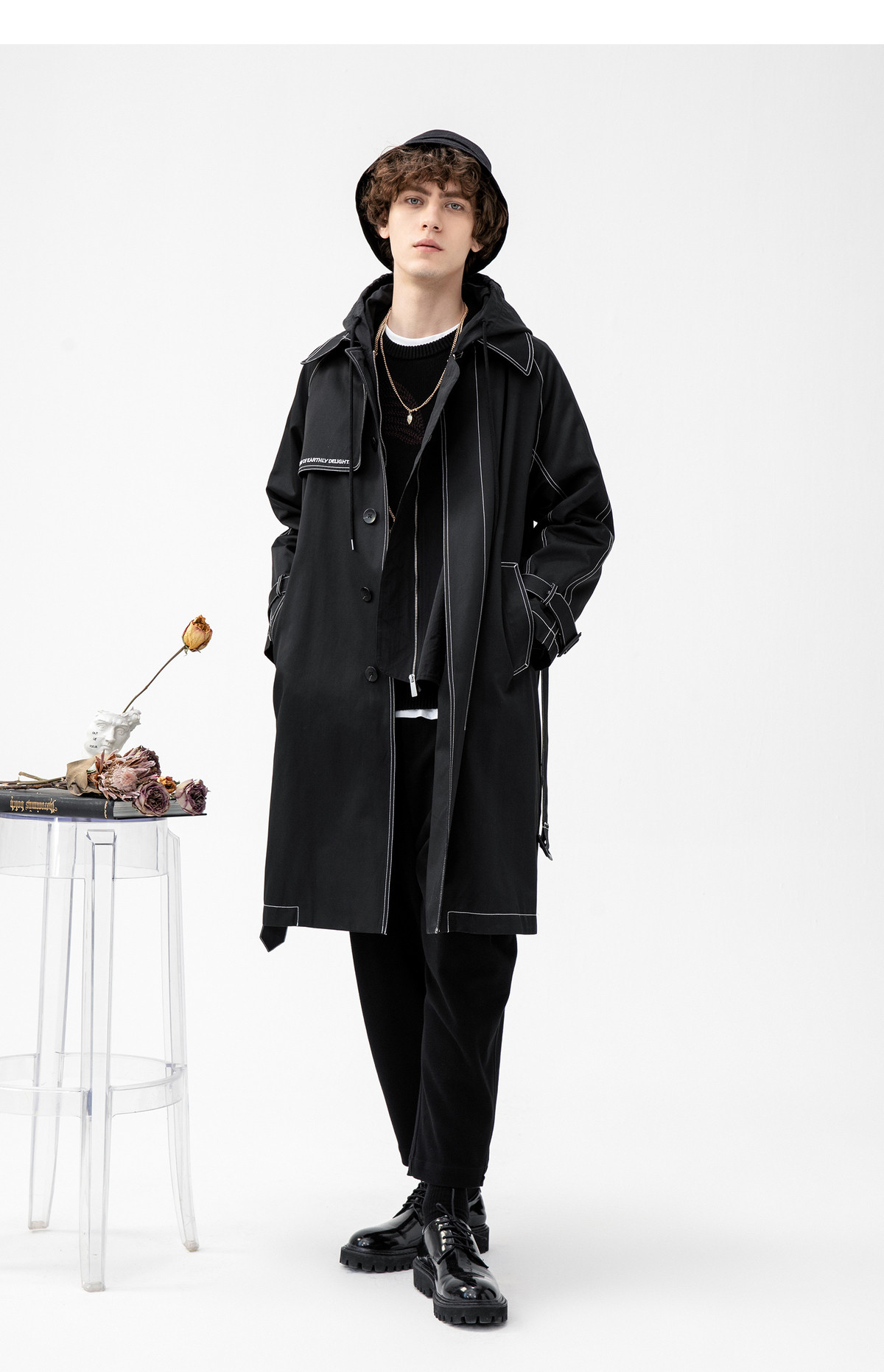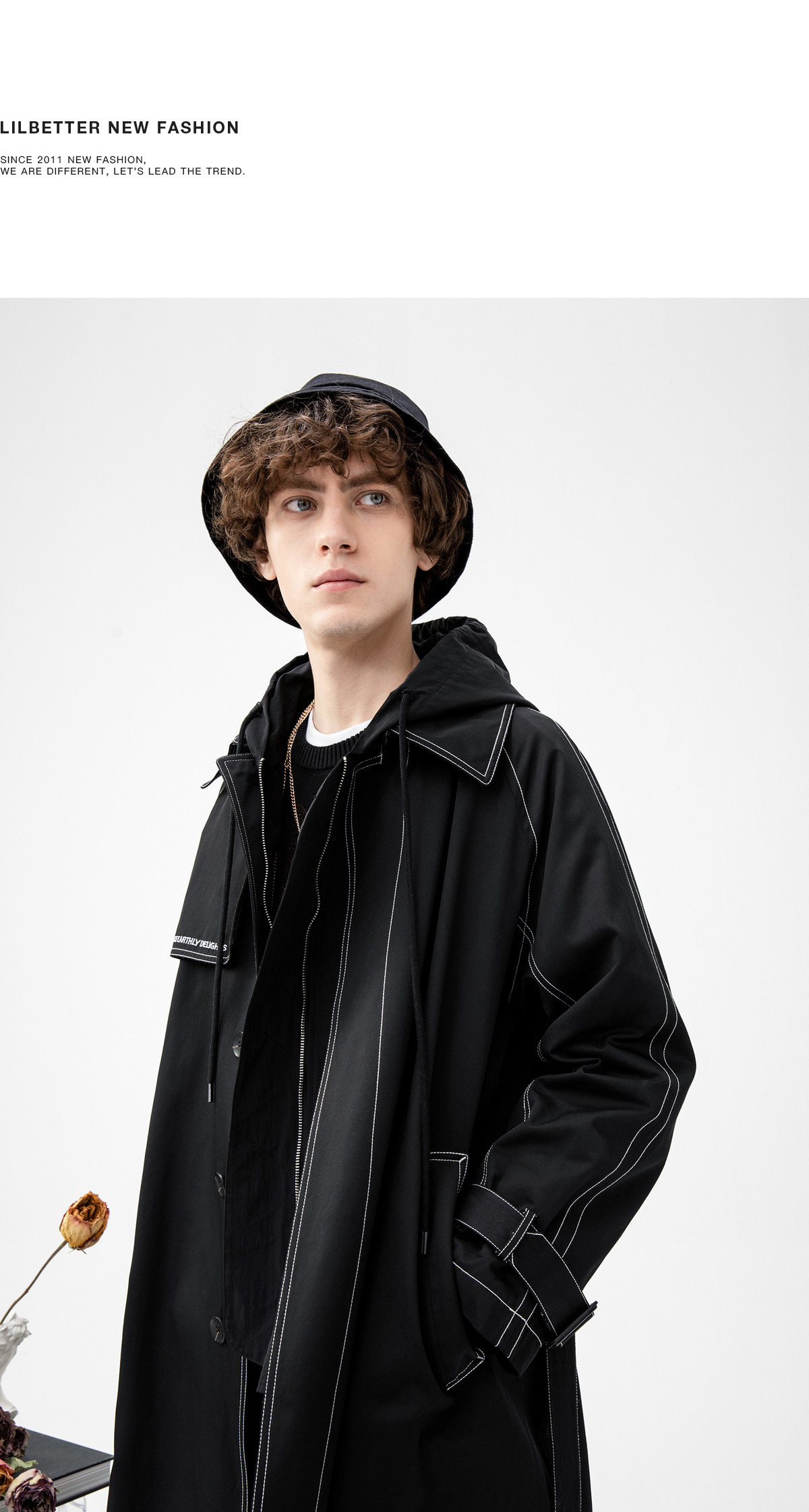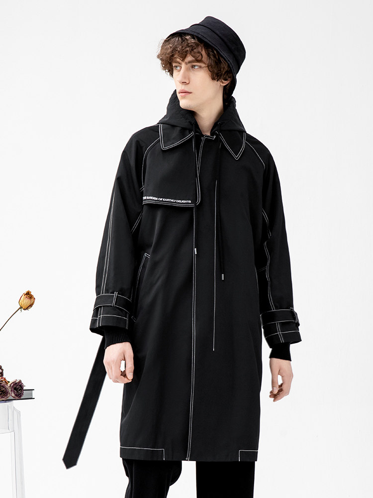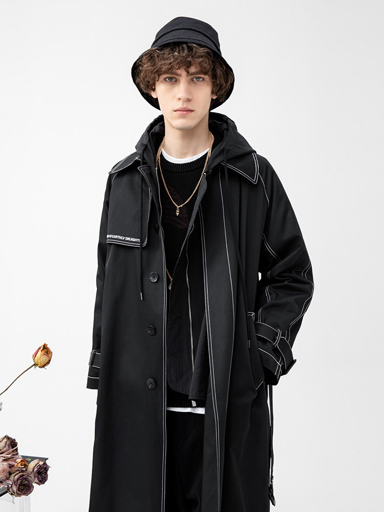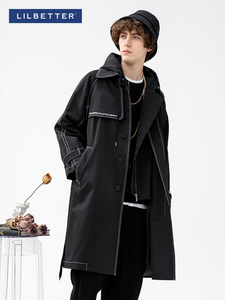 Lilbetter Длинный черный плащ для мальчиков, мужская трендовая демисезонная куртка для отдыха, в корейском стиле, оверсайз