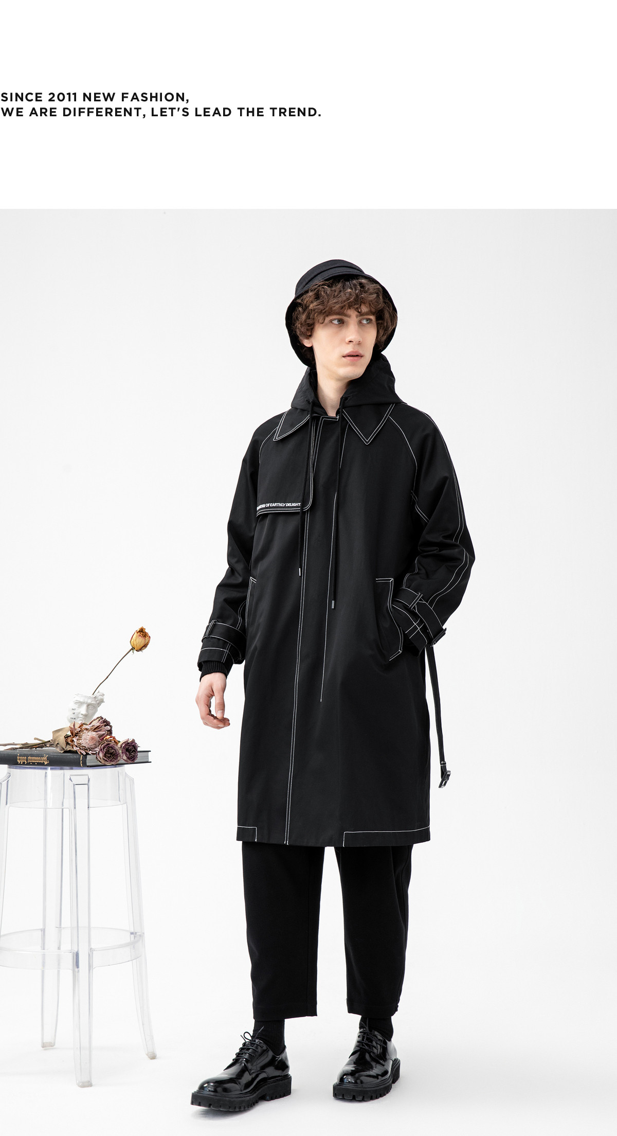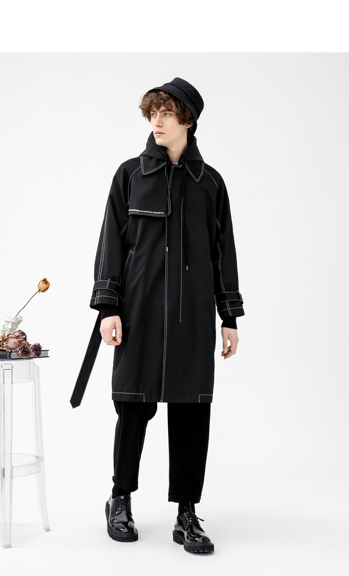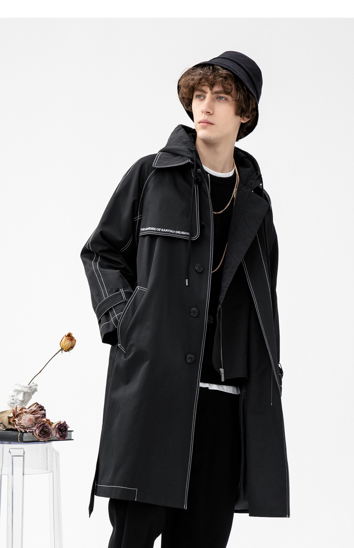 Lilbetter Длинный черный плащ для мальчиков, мужская трендовая демисезонная куртка для отдыха, в корейском стиле, оверсайз